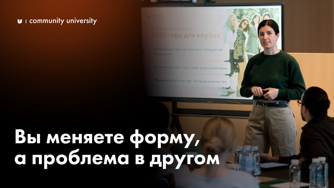 Сооснователь Community University. >15 лет строю живые вовлеченные сообщества и обучаю этому. 3000+ сообществ создали наши студенты (Самолет, Сбер, Ozon, Этажи, Skyeng и др.) Курс https://clck.ru/3GQER2 Канал ООО Ю-Университет, № в РКН 4905322103