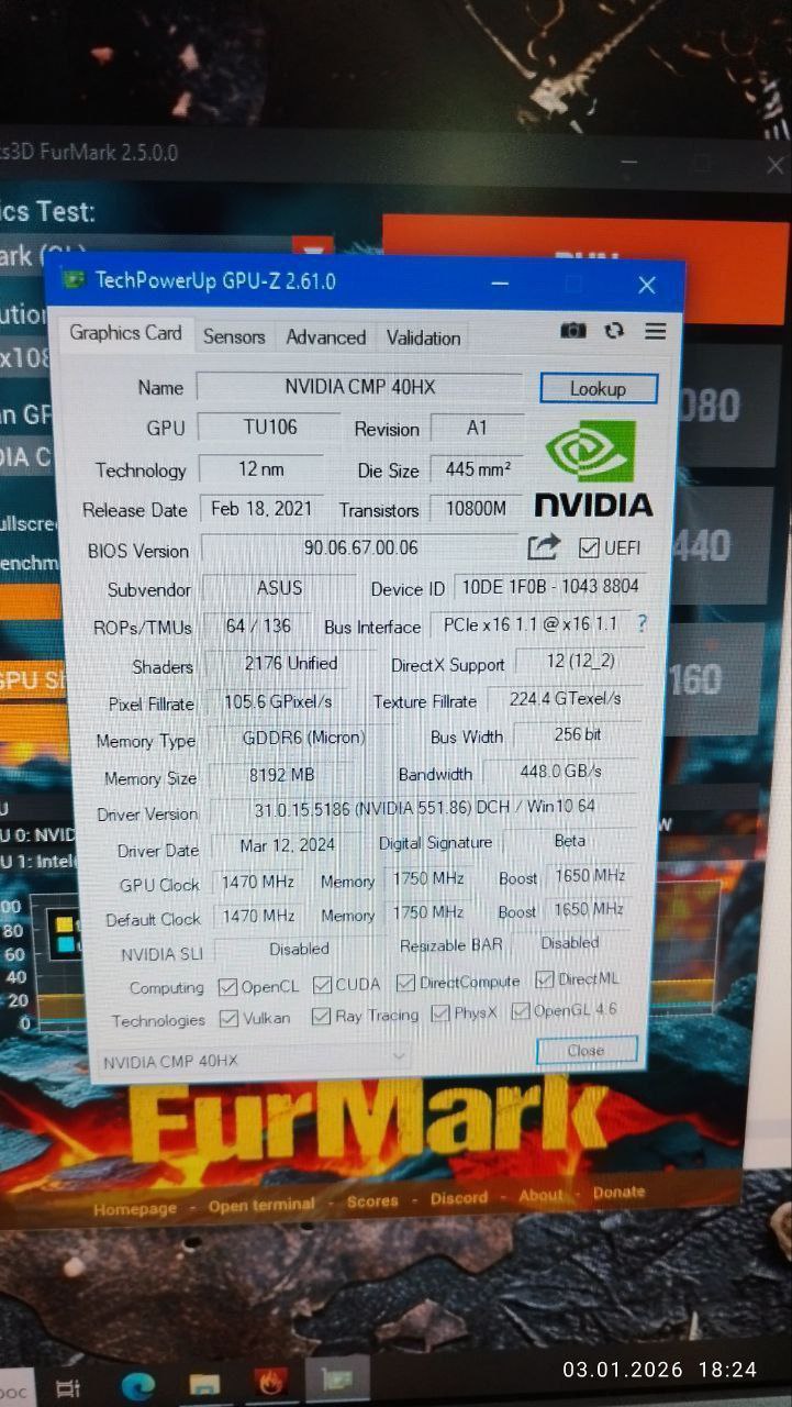 ✅Видеокарта Asus CMP 40HX 8gb 256bit