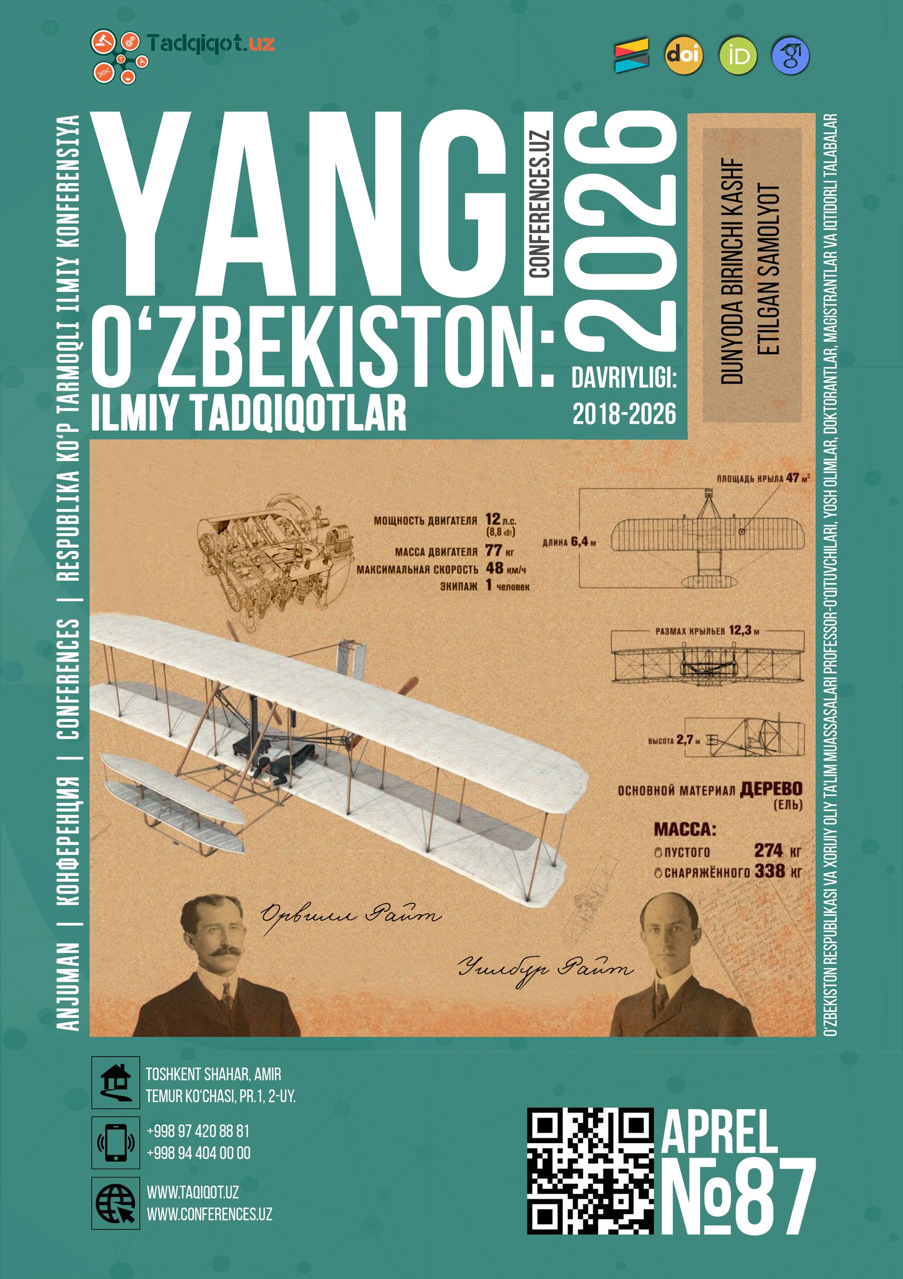 Республика миқёсида ўтказиладиган ягона кўп тармоқли “Янги Ўзбекистон: Илмий тадқиқотлар” мавзусидаги даврий анжуманларнинг 87-сон 1-қисмига қабул 13 апрелга қадар давом этади.