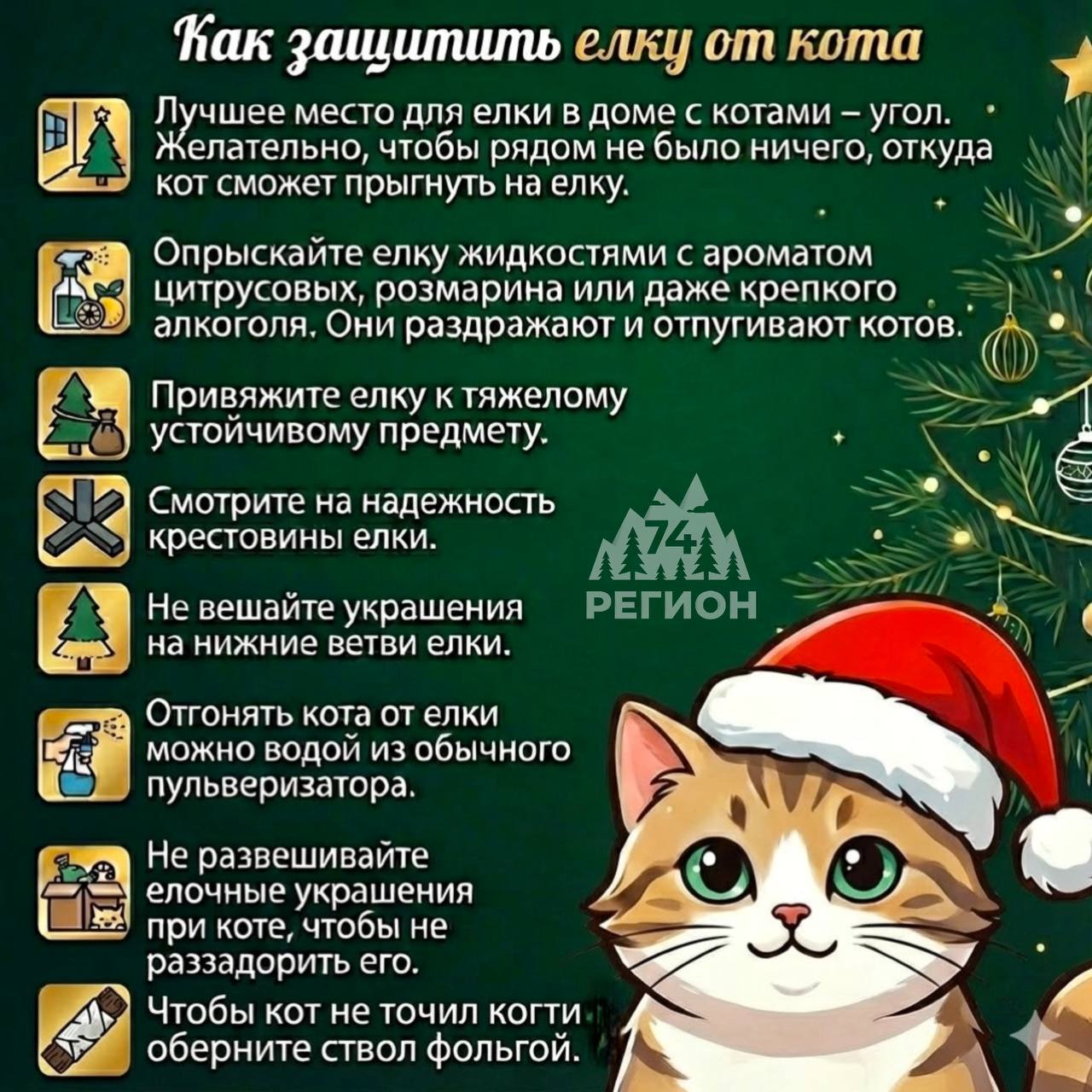 🐱 Уже поставили елку? Пора защитить дерево от наших любимых котиков 🌄 Расскажи свою новость всему региону. Напиши нам @nashregion74bot