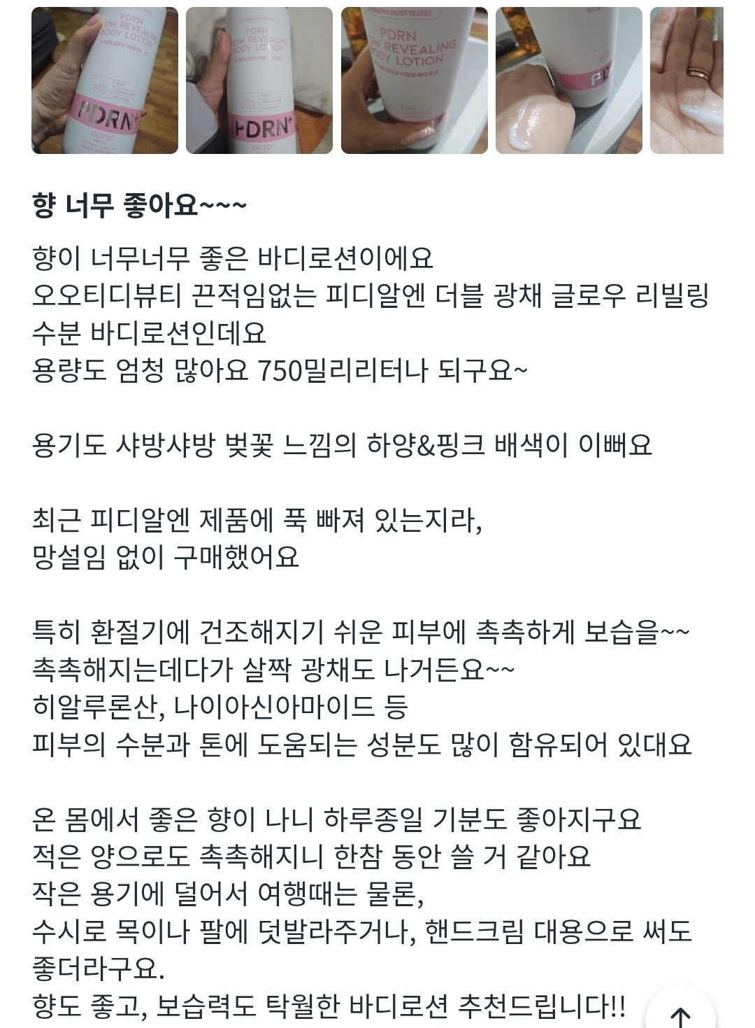 Natija: Terining chuqur namlanishi va ko'zga ko'rinarli lifting