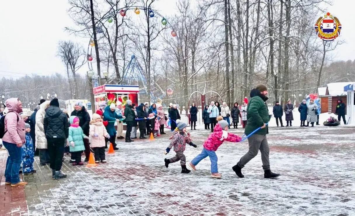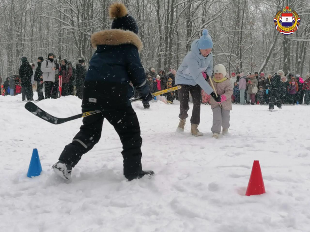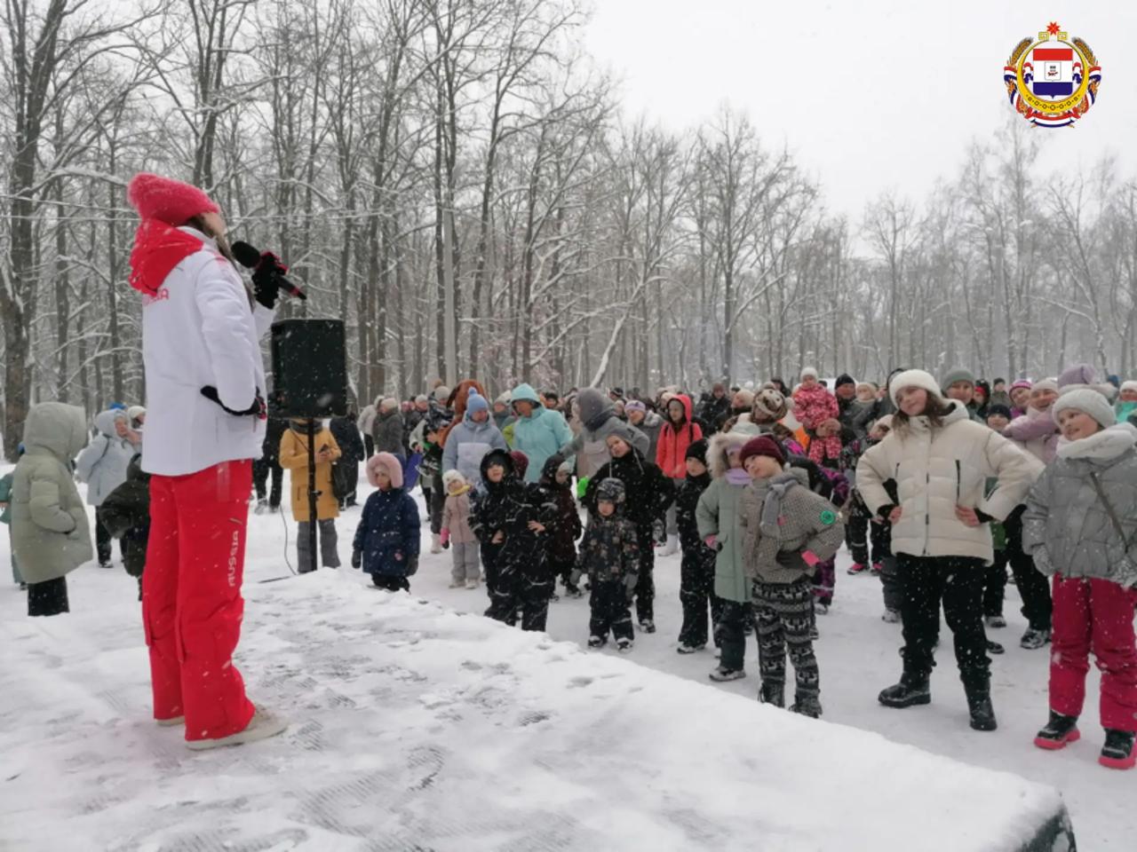 А потом – активная зарядка с олимпийской чемпионкой Ольгой Каниськиной, зимний футбол среди школьников, весёлые старты и семейные состязания.