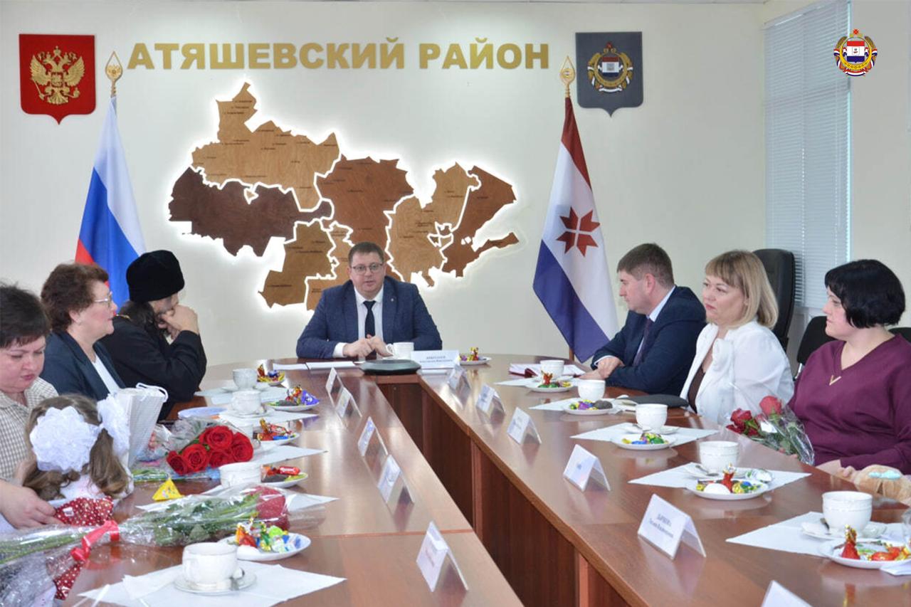 В Атяшевском районе прошла тёплая встреча с мамами и жёнами участников СВО. За чашкой чая обсудили меры поддержки семей защитников, дети подготовили стихи, а женщинам вручили подарки и слова благодарности.
