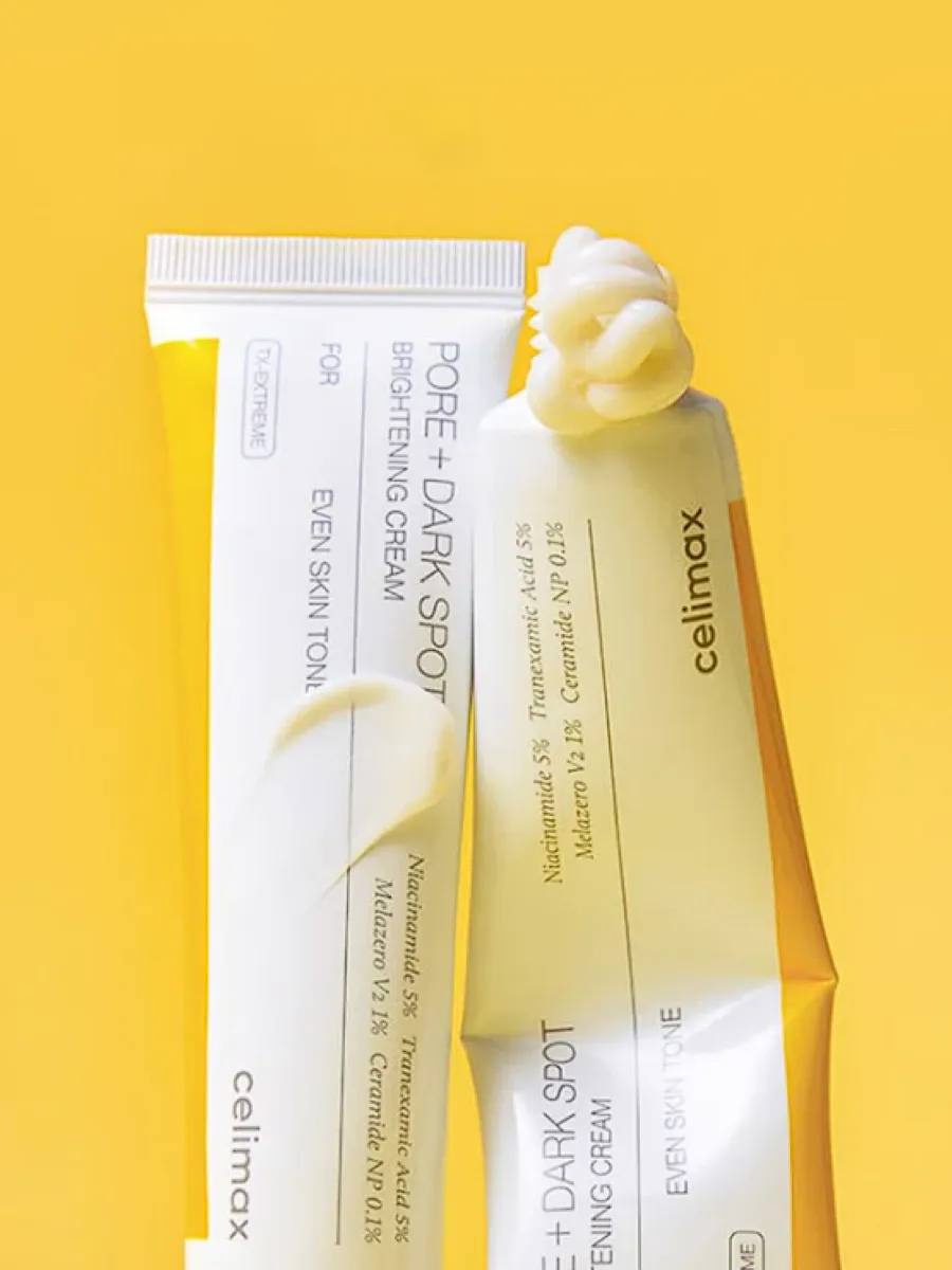 Teri rangi va relyefini tekislash uchun Celimax Pore+Dark Spot Brightening Serum Mask pigmentatsiyani kamaytiradi, kengaygan teshiklarni toraytiradi, yog‘ tolalari va boshqa nuqsonlarning ko‘rinishini kamaytiradi. Teksturani tekislaydi, yumshatadi, yuzga sog‘lom nur qaytaradi. Tarkibida niatsinamid, traneksam kislotasi, arbutin, glutation, PHA va 10 xil gialuron kislotasi bor.