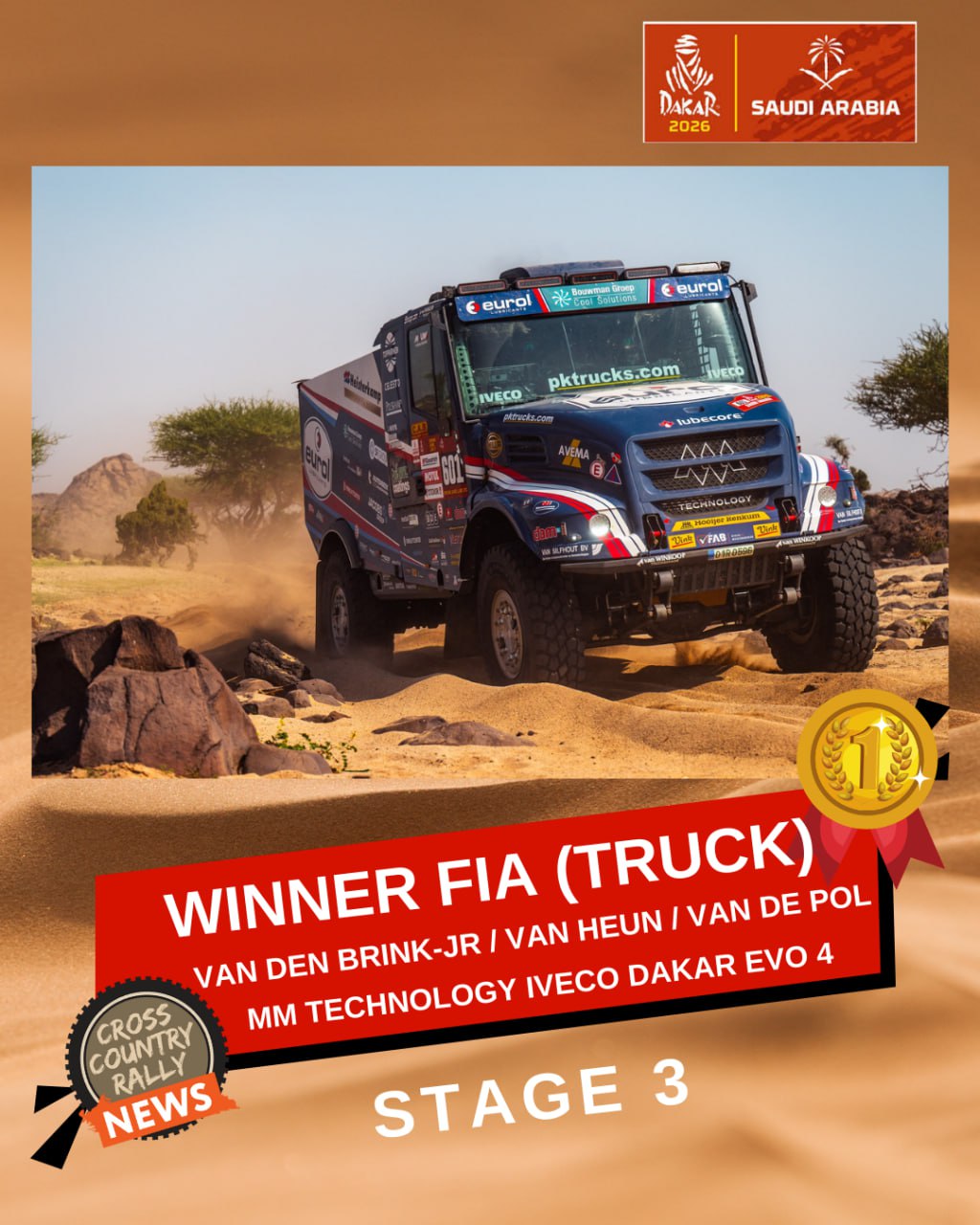 Сегодня у нас третий день, и сегодня был трудовой день, потому что сегодня мы помогали не только себе, но и экипажам нашей команды. Порядка 120 километров, мы очень быстро ехали, прям вот был настоящий гоночный темп, обгоняли одного за другим, были интересные скоростные дорожки, было довольно много песка, поэтому не так много было пыли, ну местами она конечно была, но тем не менее, благодаря тому, что песок не так пылит, была возможность подъезжать к экипажам и достаточно безопасно их обгонять.
