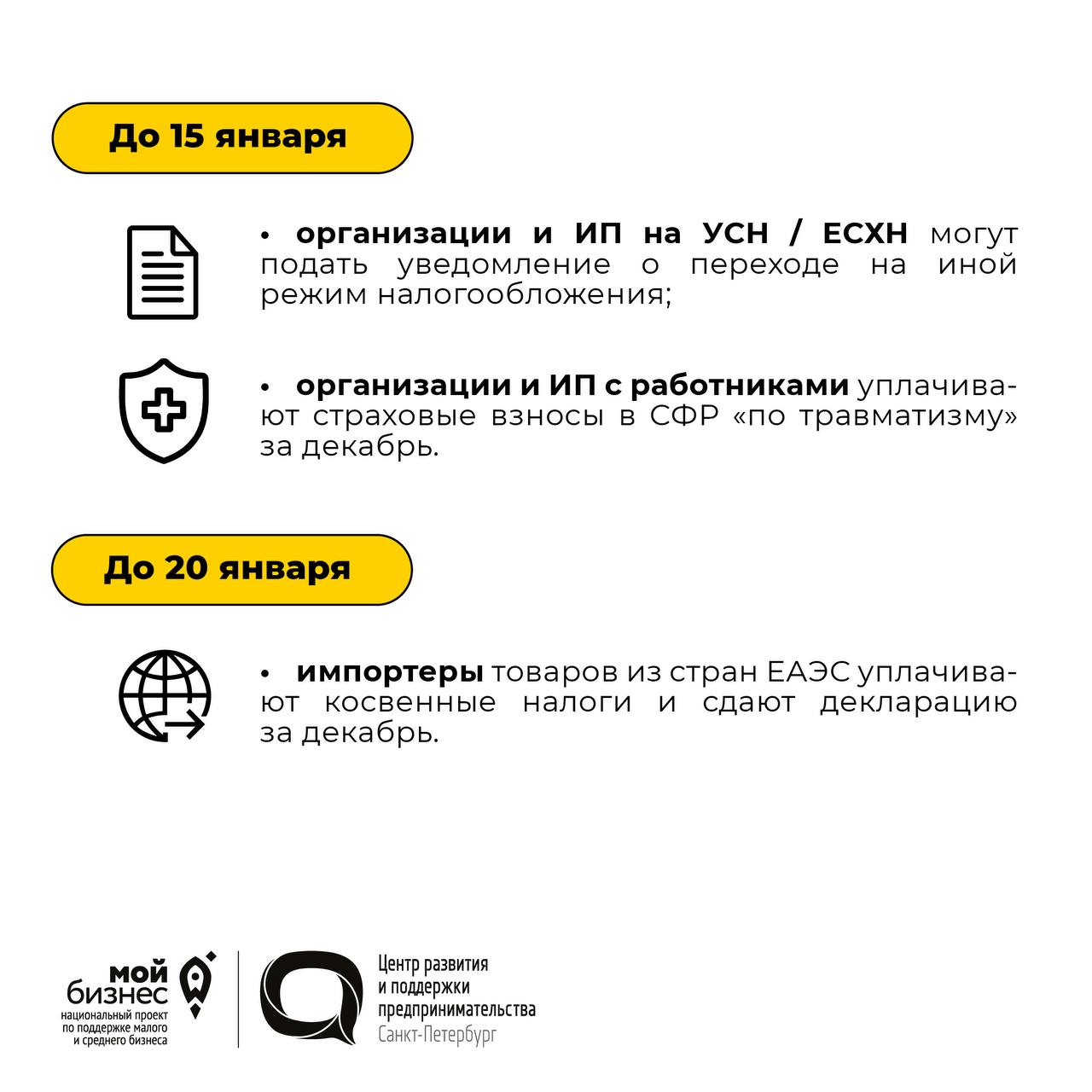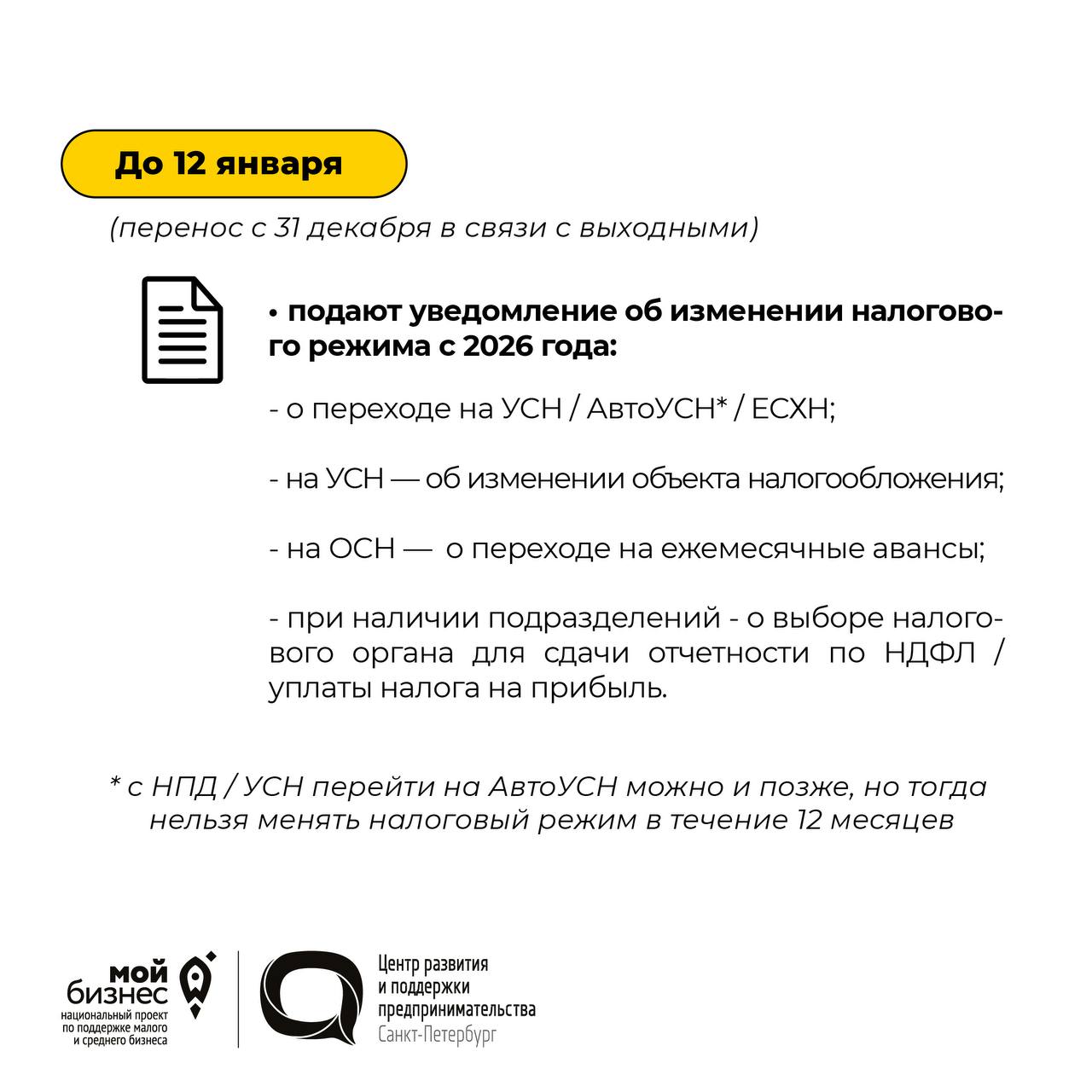 🔸Изменить налоговый режим на следующий год по своему желанию в ряде случаев можно не позже 12 / 15 января;