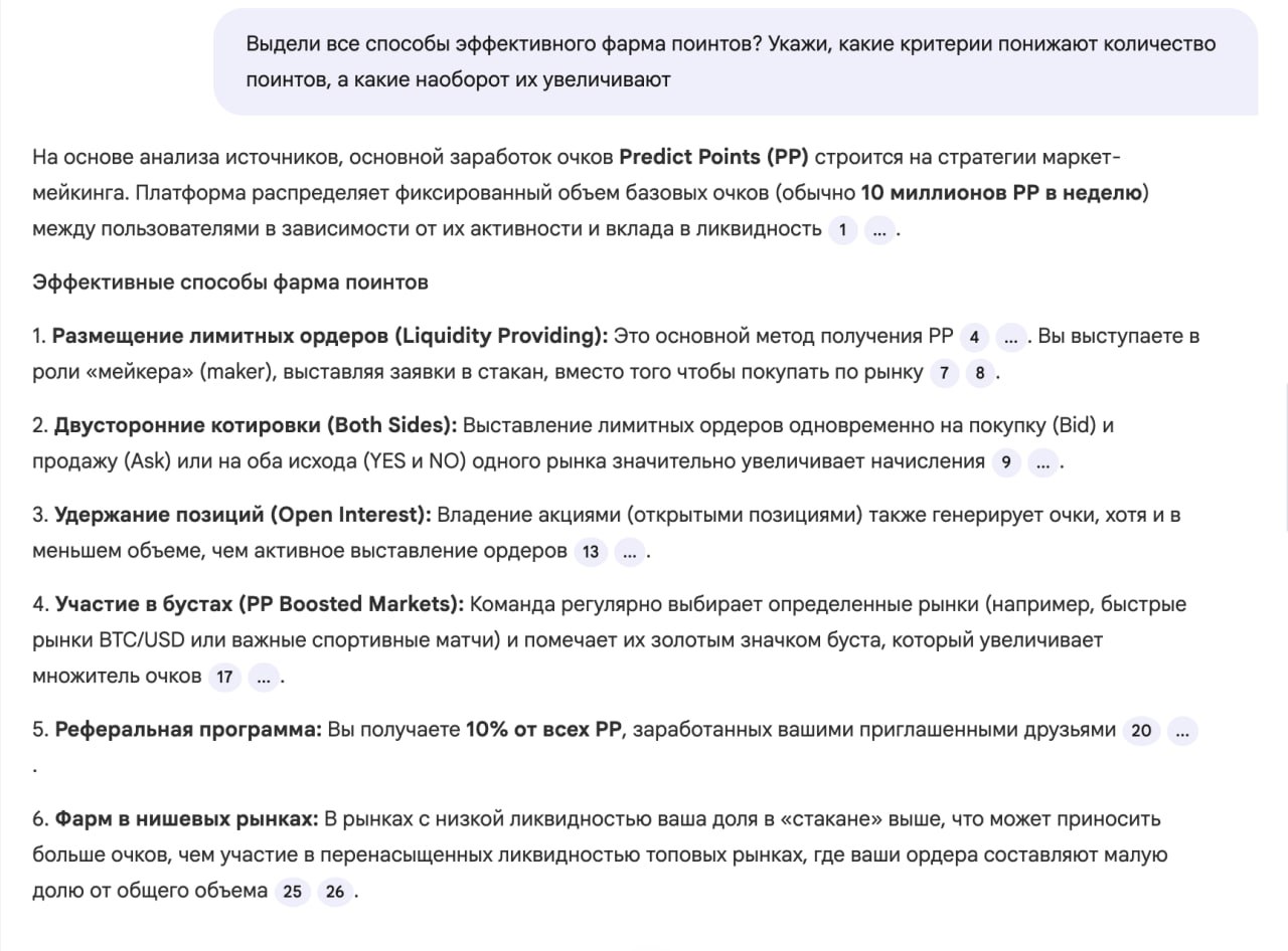 Например, для проекта Predict.fun я спросил следующее: