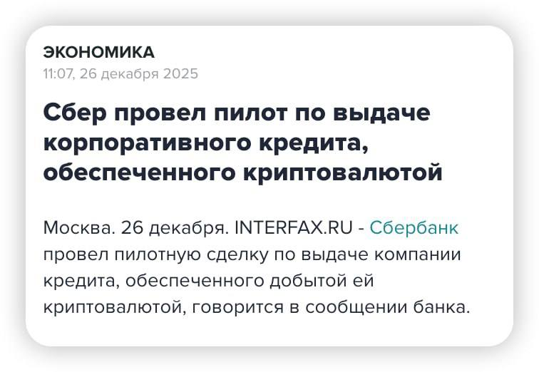 ☕️Первый крипто-кредит выдал Сбер