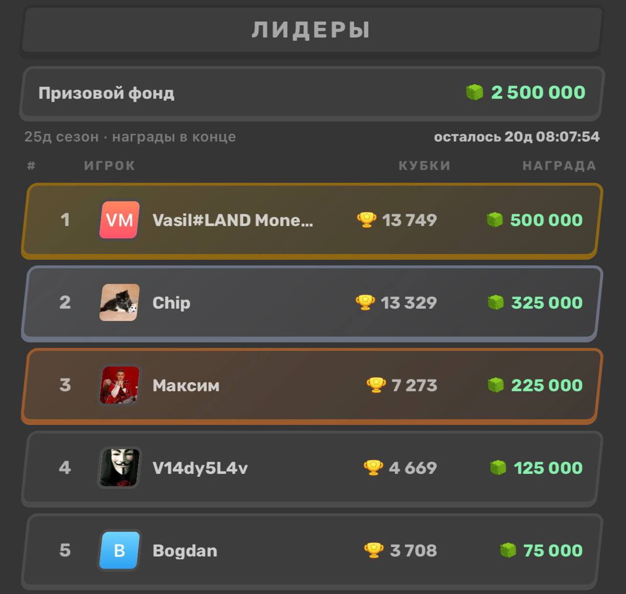 Получено с лидерборда: 1,730 $