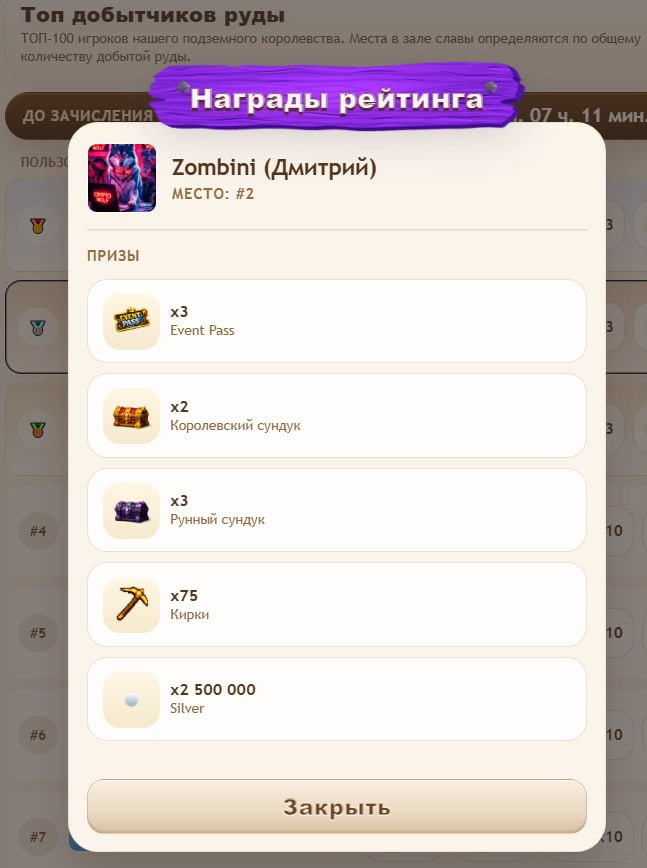 В сезонной таблице лидеров 100 лучших игроков, добывших руду между 15 марта и 1 июня, получат награды!