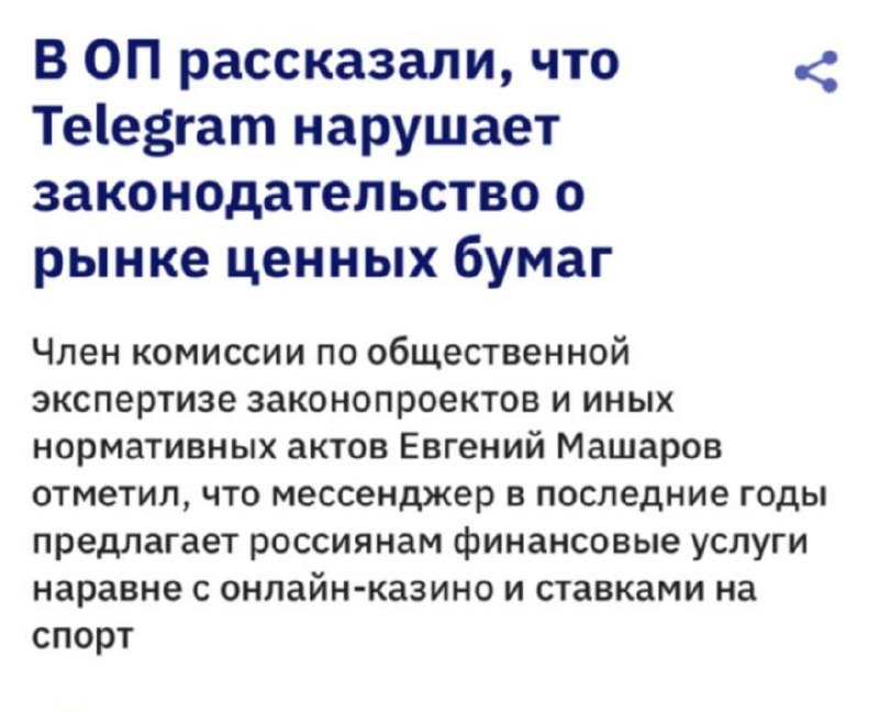🌟 В Общественной Палате РФ заявили, что кошелек Wаllet внутри Telegram нарушает российское законодательство о ценных бумагах.