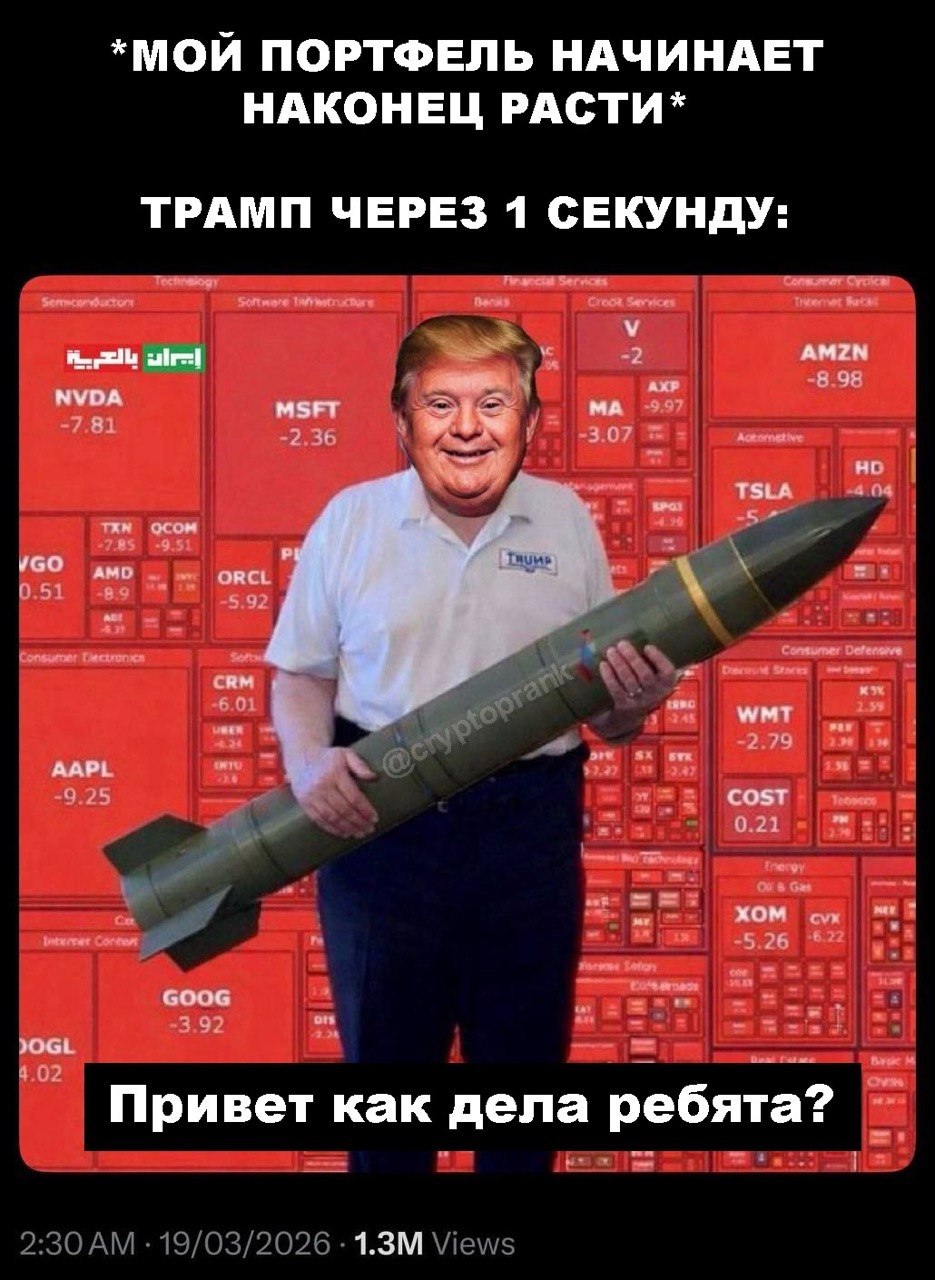 🤭 Хорошее открытие недели. Биток вернулся к $69k на фоне слухов, что США и Иран якобы обсуждают прекращение огня на 45 дней. В субботу Трумп дал Ирану 48 часов и пообещал ад, а в воскресенье уже перенес дедлайн ада на 82 часа. Дони выдвинул Ирану уже 5 ультиматумов и 5 раз их перенес.
