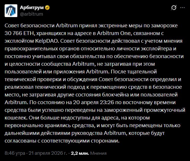 📉 TVL Aave за два дня после взлома Kelp упал более чем на $8,5 млрд — до $17,74 млрд.