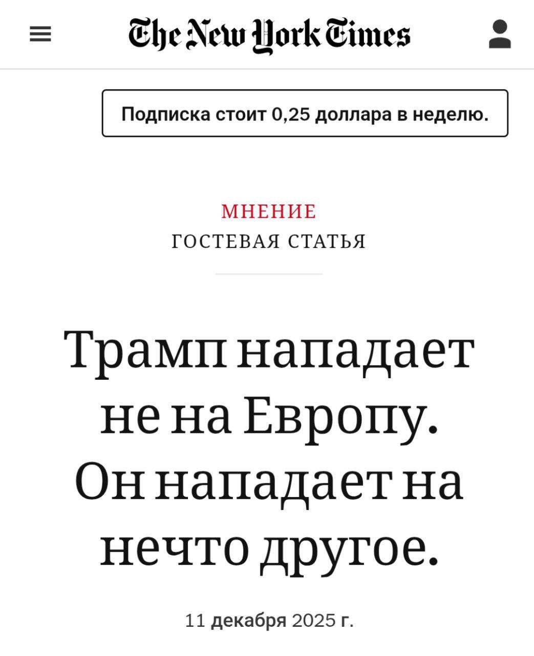 ♨️ 🇺🇸 В NYT вышла интересная статья под заголовком «Трамп нападает не на Европу, он нападает на нечто другое». Разумеется, ведь Европы в том виде, в котором она привыкла любоваться собой, больше нет.