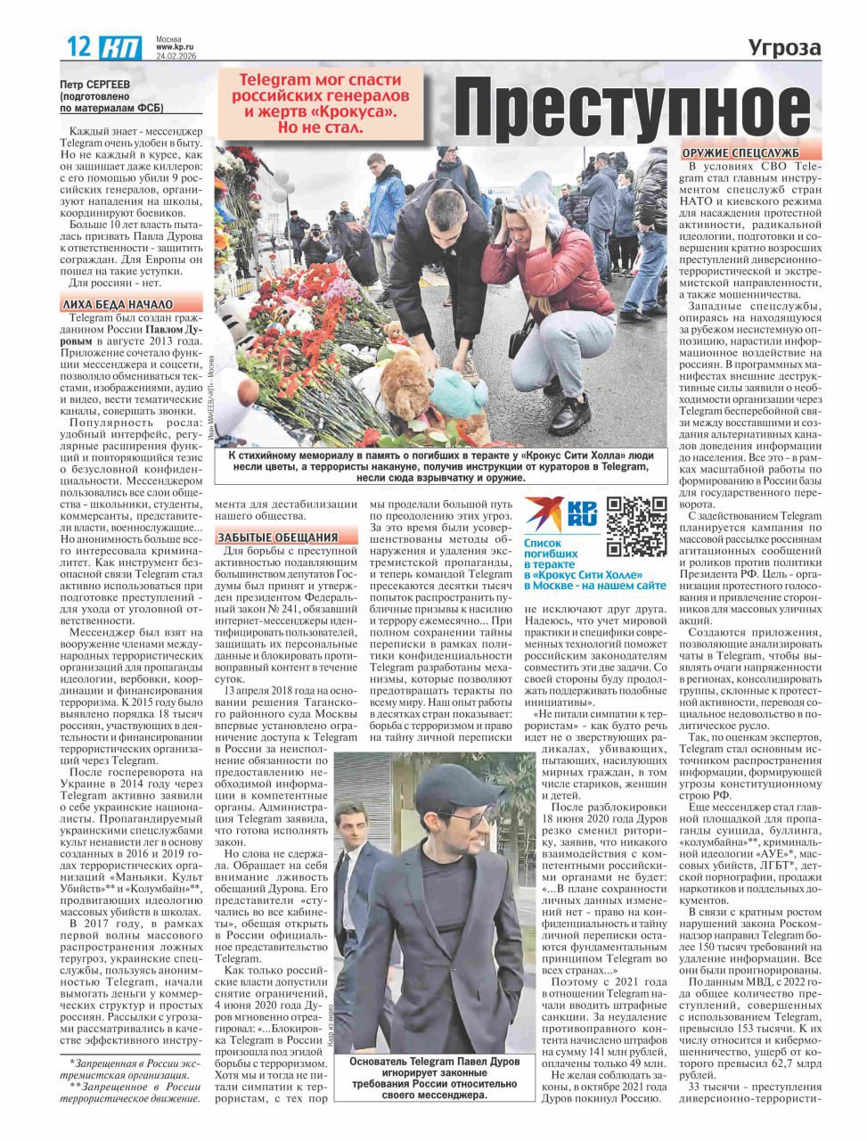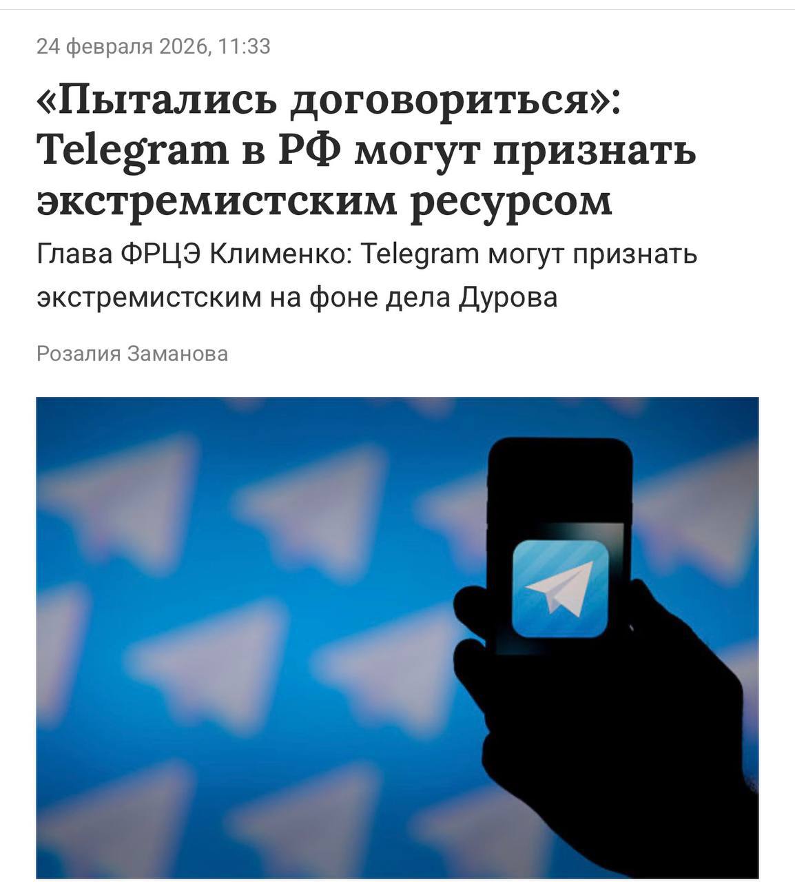 ➖Статьи об ужасном Telegram появились даже в печатных газетах на главных страницах, там пишут, что телега «поучаствовала» в 153 тысячах преступлений с 2022 года.