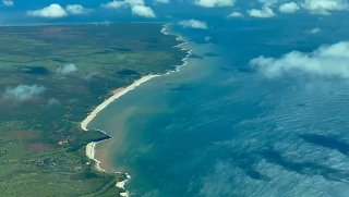 Aloha aus einer Frühlingswiese in Moloka‘i! Die Felder und Pflanzen erholen sich rasch von der Regenflut, doch das braune Meer im Hintergrund zeigt die Spuren der Verwüstung.
