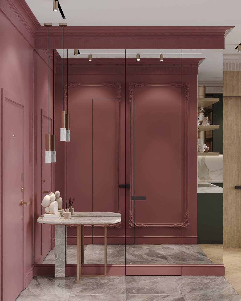 Кухня в современном стиле - проект, где эстетика и функциональность находятся в балансе. Палитра оттенков приглушенного терракота создает ощущение тепла и глубины, оставаясь при этом сдержанной и благородной. Эти цвета работают не как акцент, а как фон, подчеркивая графичность и продуманность интерьерных решений.