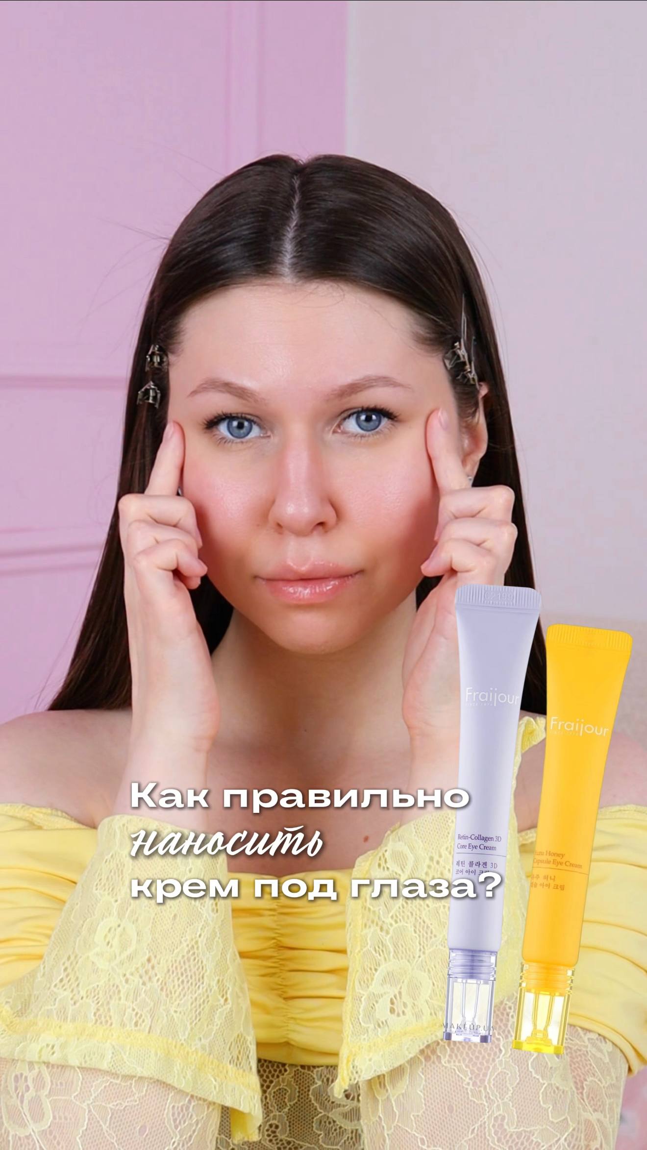 тауп в складку, светлый на подвижное веко, тёмный сияющий для стрелки и тёмный матовый для смоки.
