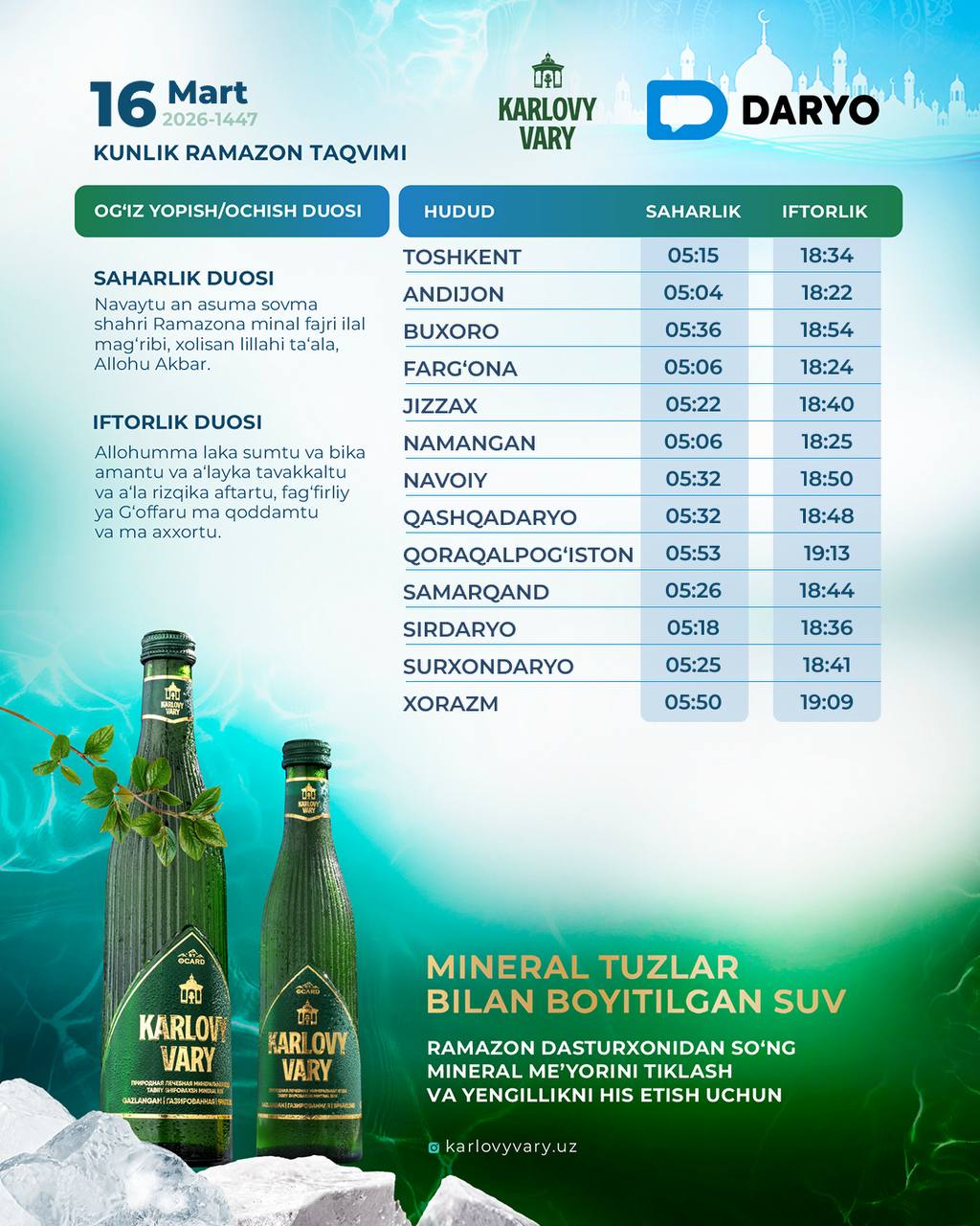 Saharlik (og‘iz yopish) duosi | 26-kun