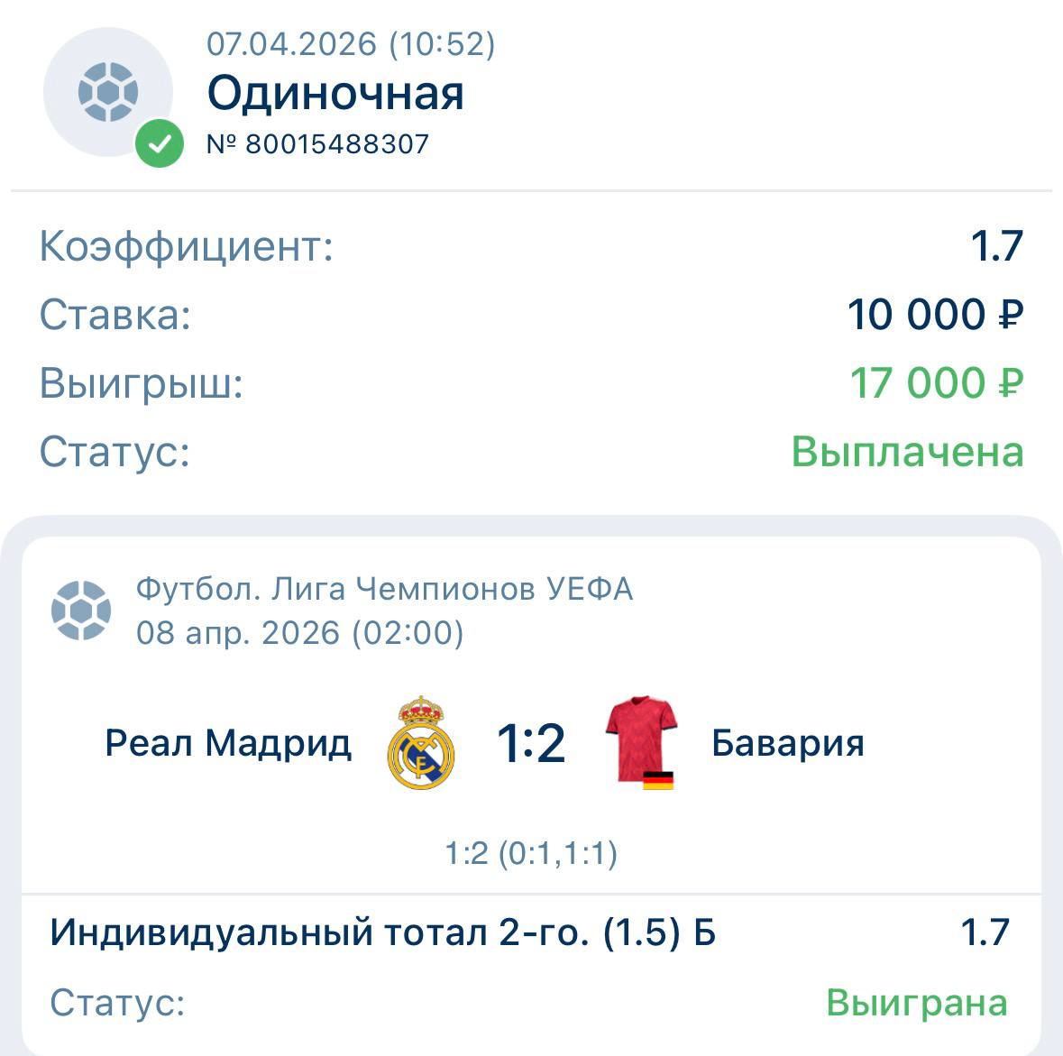 📈 Коэффициент: 1.7+
