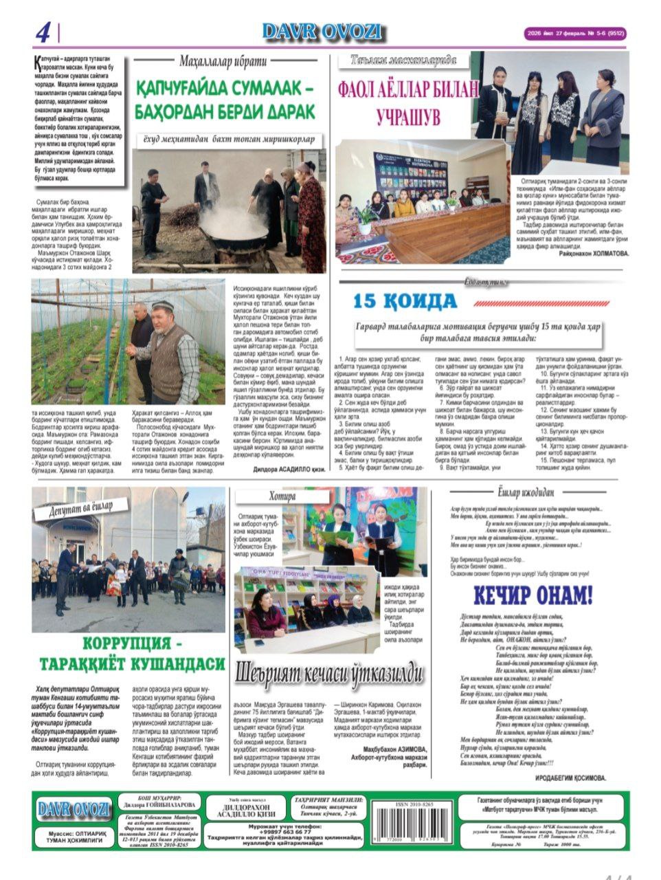 "Давр овози" газетаси таҳририяти Олимжон Ҳакимовга узоқ умр, мустаҳкам саломатлик, оилавий бахт тилайди.