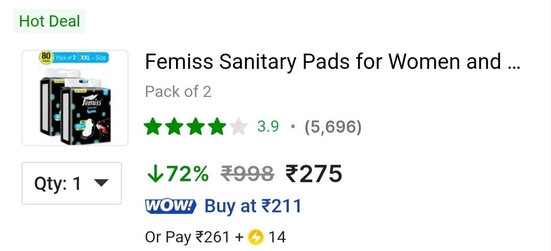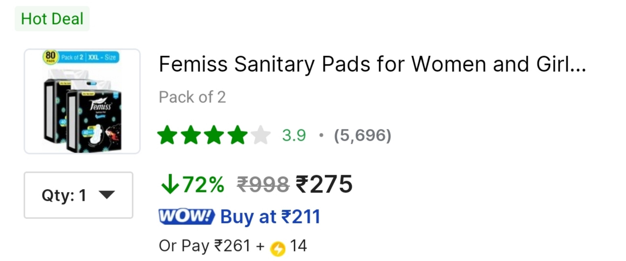 Lowest : Femiss Sanitary Pads (3XL Size × 40 Pads Each) at 275.
