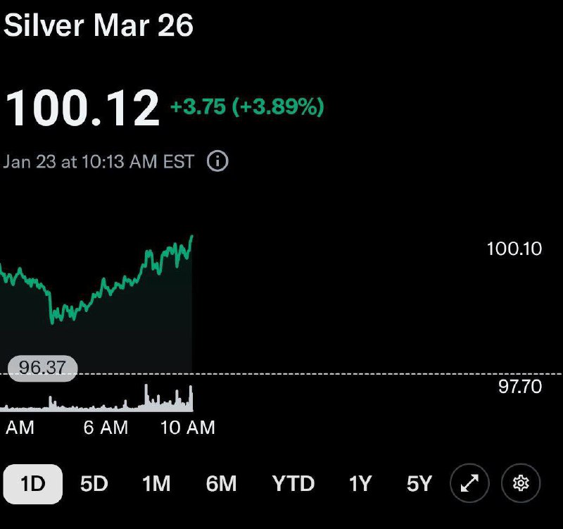 📊 Серебро впервые в истории достигло $100.