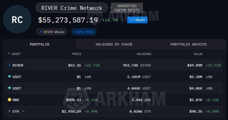 ☠️ В аналитическом треде рассматривается схема манипуляций с токеном RIVER, в которой, по данным автора, ключевую роль сыграла инфраструктура биржи Bitget.