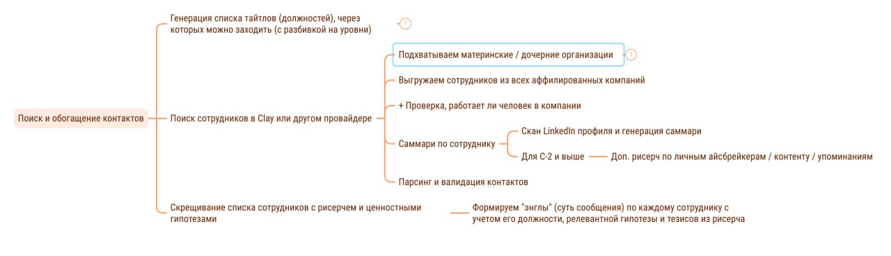 Пример на скриншотах — крошечный (и как будто бы несложный) кусочек бизнес-процесса по отработке целевого аккаунта — поиск нужных контактов под нашу гипотезу.