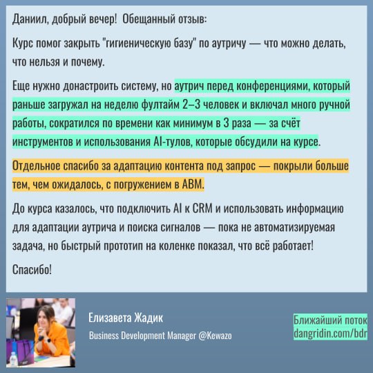 Особенно, если у вас не очень массовый аутрич с большой ценой ошибки.