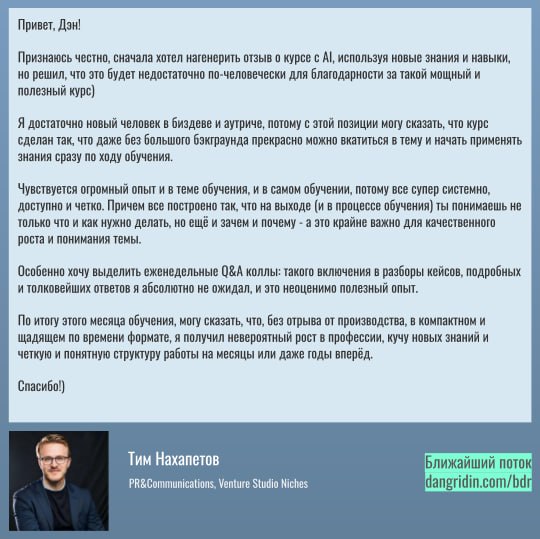 Если хотите провести эту работу под моим надзором — приходите на базовый курс для AI-first биздевов (только что выложили даты нового потока -- старт 27 апреля) или свяжитесь с редакцией, чтобы обсудить индивидуальную работу с командой.