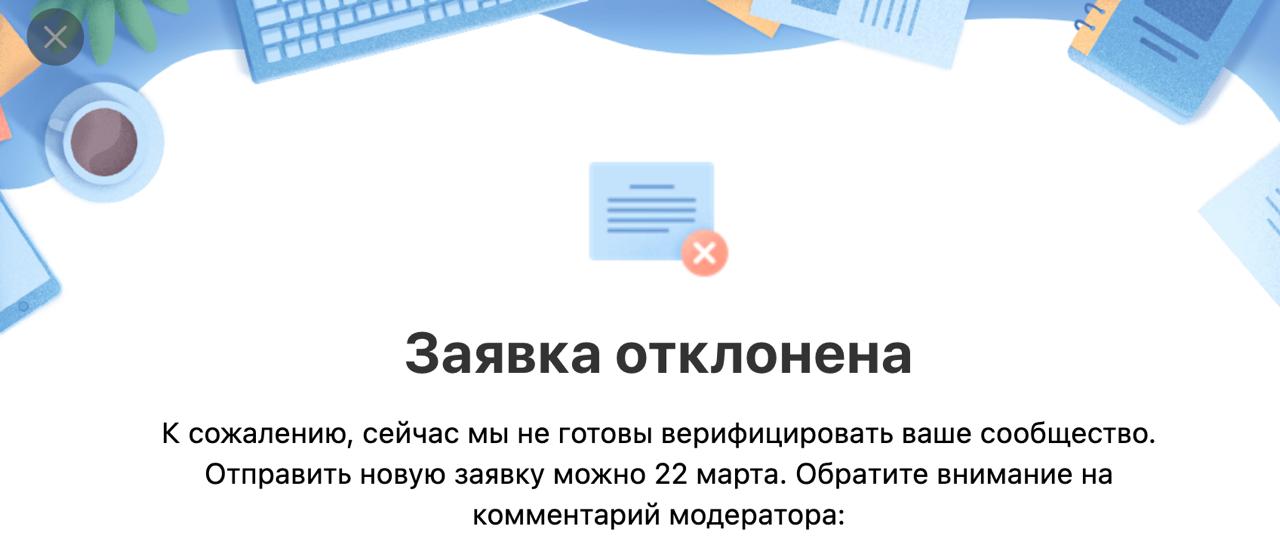 Причем мои сообщества были уже там верифицированы ранее, но потом за неактивность галочку сняли.