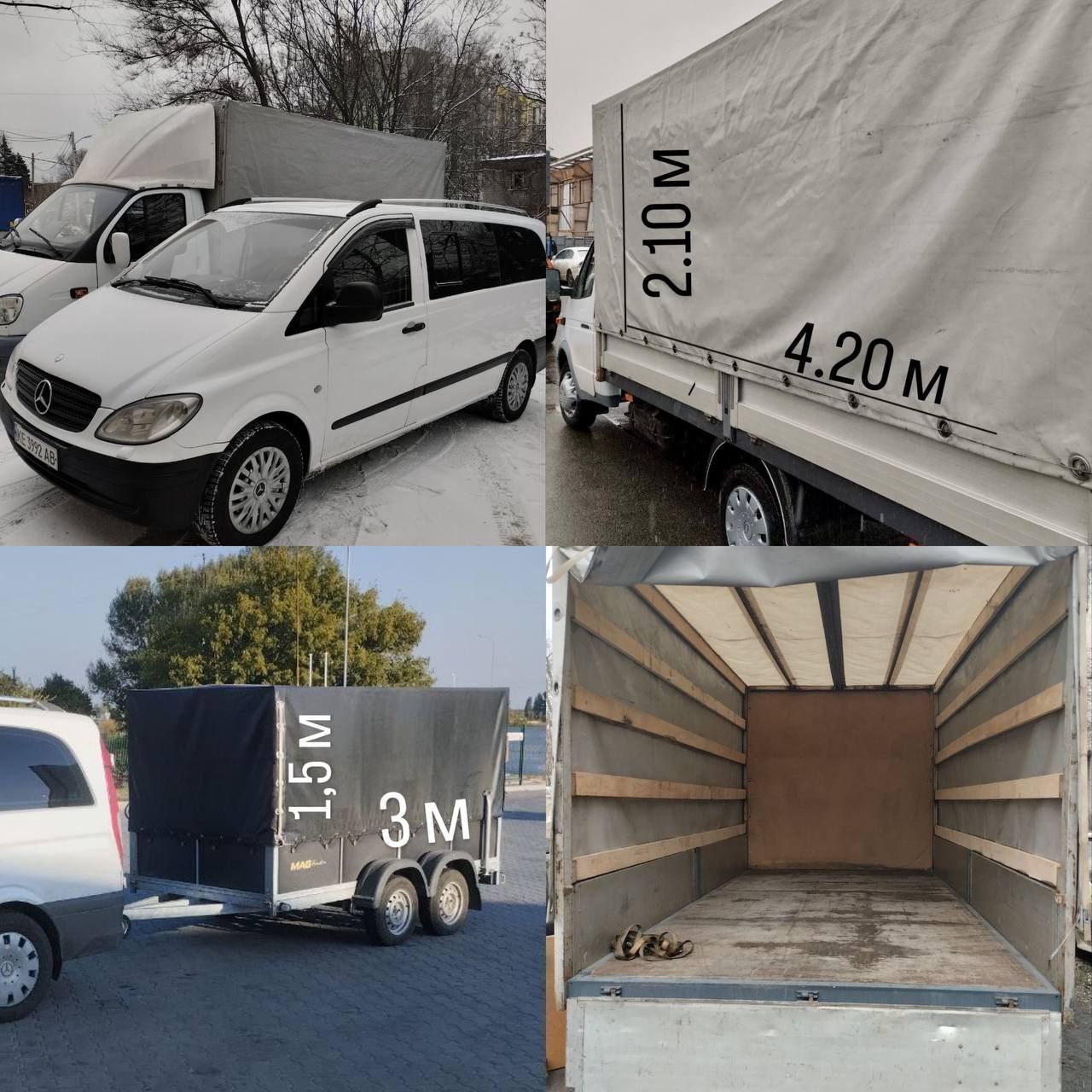 ▪ Газель: довжина 4 м, ширина 2 м, висота 2 м (16 кубів)