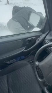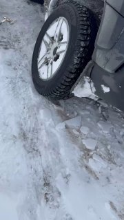Сели, поехали и за это время, пока нас не было, дорогу очень сильно занесло. Дороги не видно, мы съехали в яму, и машина легла на бок.