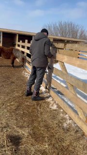 Снег начинает активно таять, и наша задача убрать его из левады, чтобы поняшки не ходили по мокрому и не проваливались в рыхлый снег.