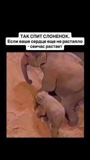 Маленький слонёнок на видео спит совершенно расслабленно, потому что рядом стоит его мать.