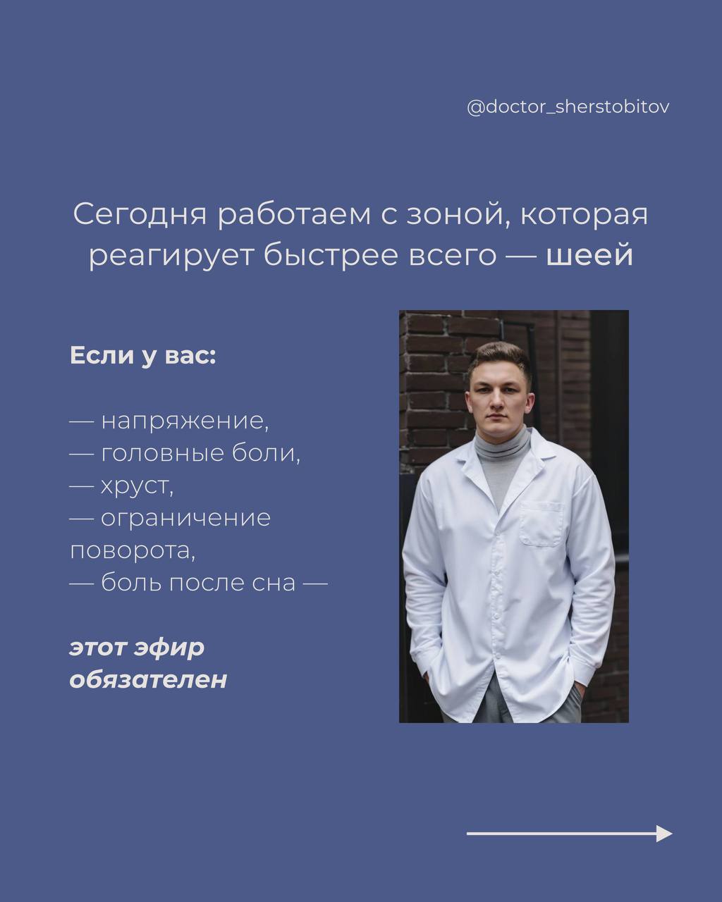 Сегодня работаем с зоной, которая реагирует быстрее всего — шеей.
