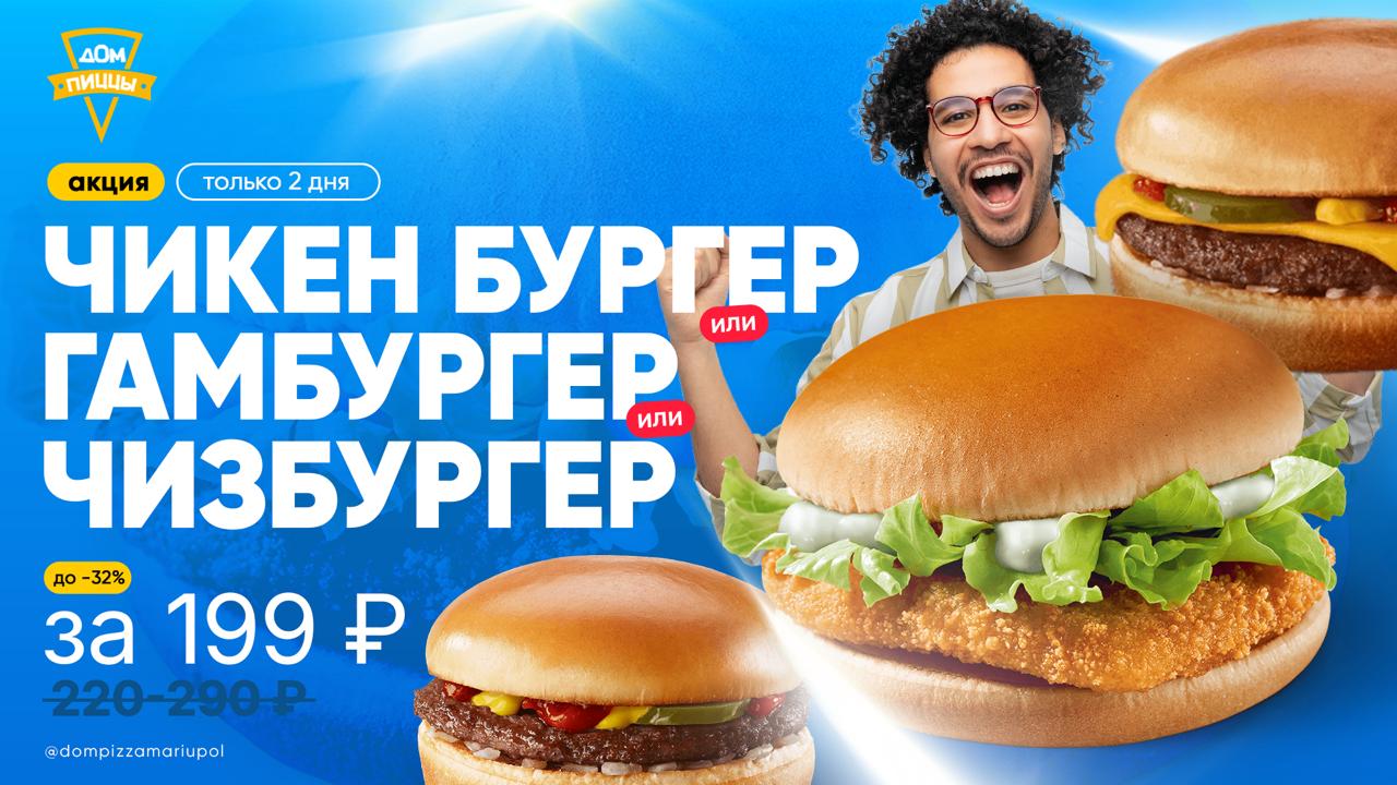 Чикен Бургер Гамбургер или Чизбургер за 199 ₽