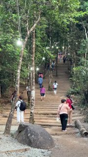Подняться на вершину можно на местных пикапах-шаттлах ( ехать страшно 20 минут), или пешком почти 6 км по самым настоящим джунглям в гору ( и люди шли, мы их видели). А последние километры от остановки пикапов до самого камня - пешком по ступенькам в гору.