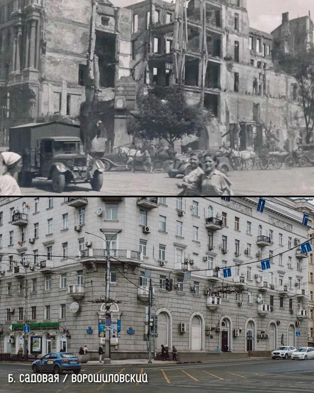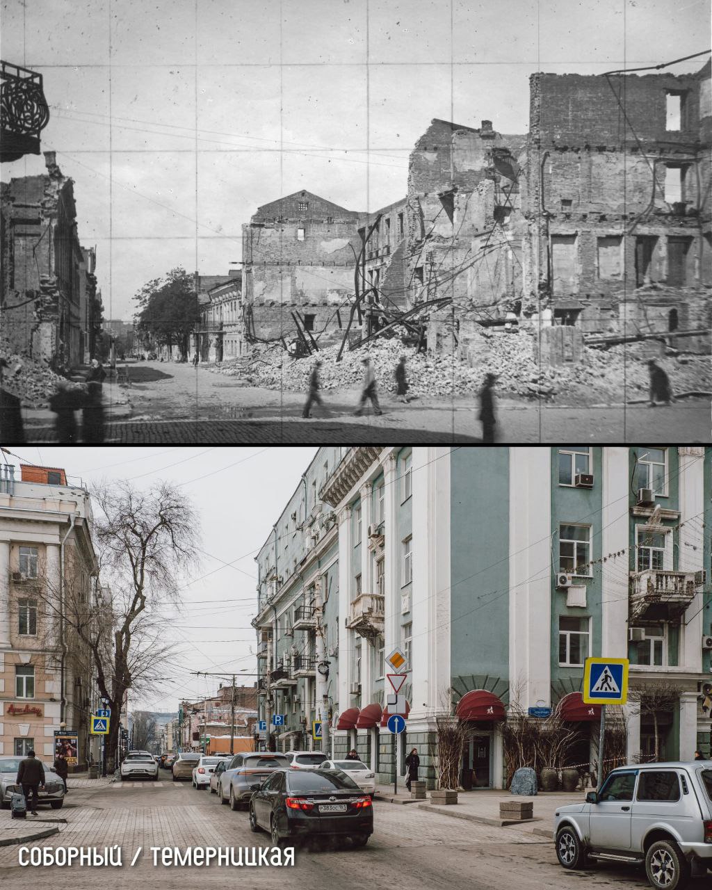 Городу грозил бум сталинских новостроек, но тогдашние архитекторы смогли защитить идею восстановления. Они реконструировали большинство зданий, сохранив их облик. Сейчас в центре, а именно на Большой Садовой, многие дома выглядят так, как до оккупации.