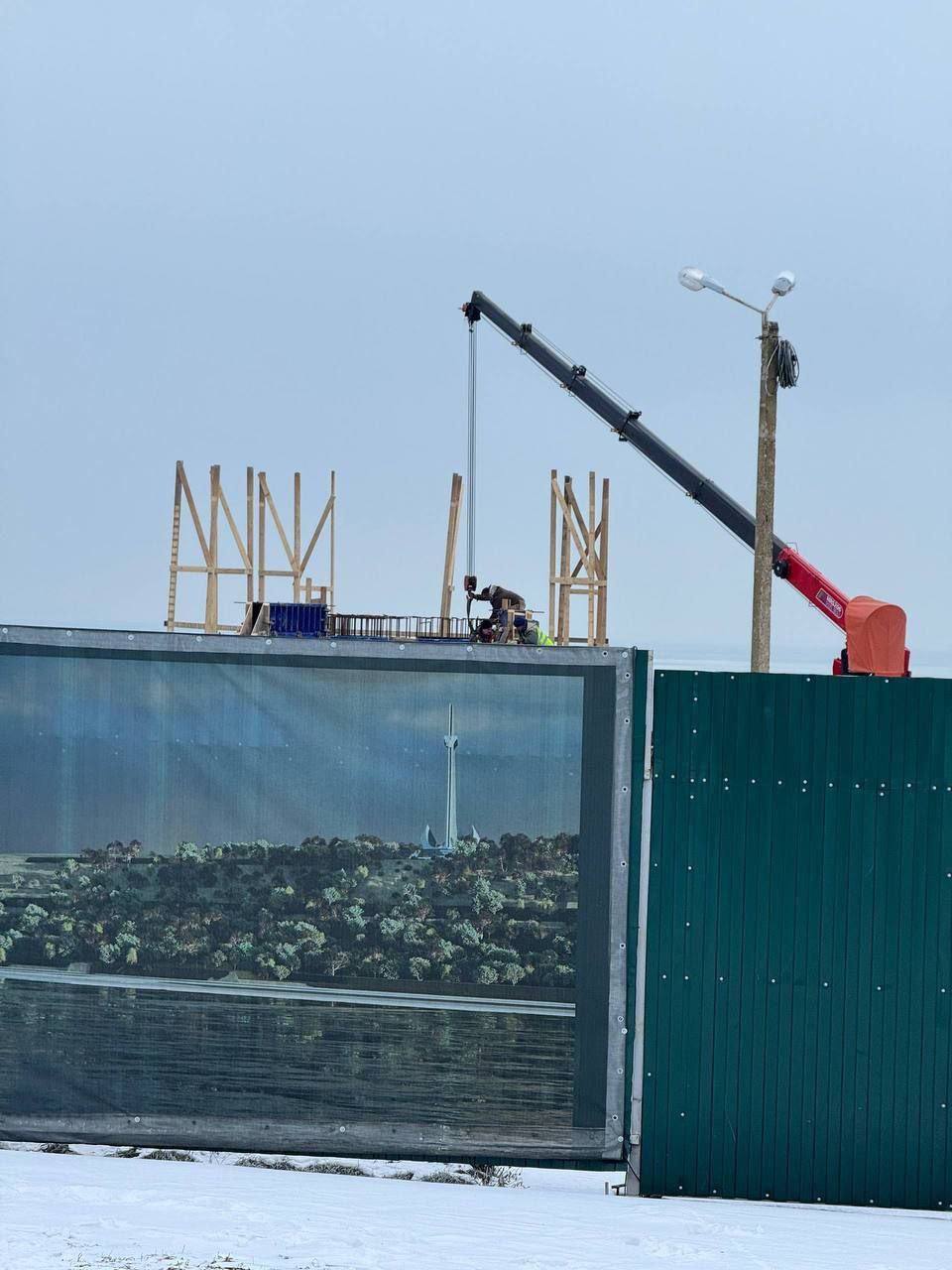 Работы ведутся на смотровой площадке Приморского парка. Центральным элементом «мемориала» станет 50-метровая стела в виде якоря, на которую уже устанавливают металлоконструкции. Как заявляют российские оккупанты, проект согласован с Владимиром Путиным и должен стать крупнейшим мемориалом в России, посвящённым «СВО».