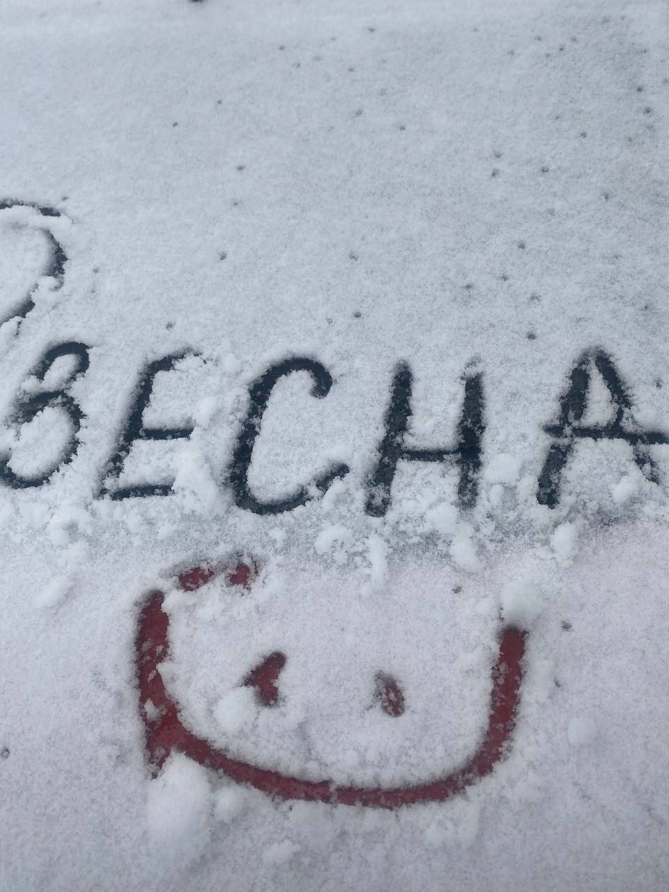 Горожане иронично относятся к снегу в апреле и пишут на снежном покрове слово «весна».