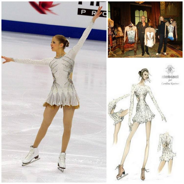 На моей памяти , только Роберто Кавалли из мировых известных дизайнеров делал платья для Каролины Костнер . Она была его музой в спорте , это звезда итальянская , чемпионка семикратная Европы , она вместе с Евгением соревновалась в его бытность , они всегда выигрывали на пару чемпионаты Европы .
