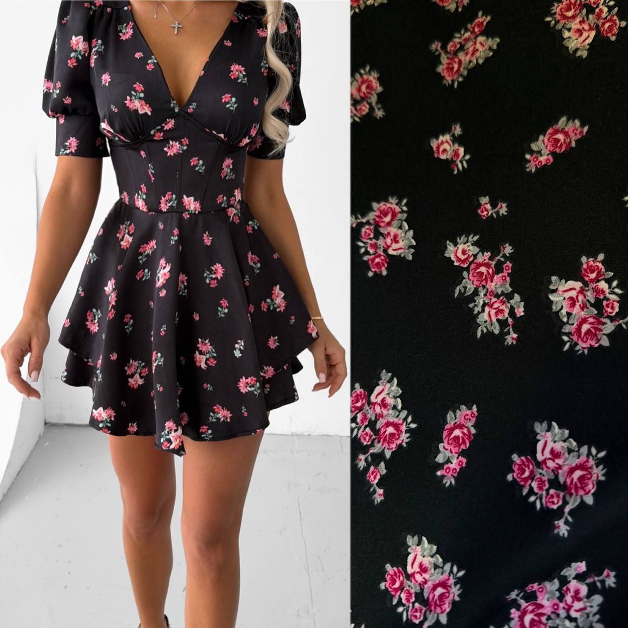 Ідеально до весни та літа - повітряна сукня - комбез з імітацією корсету. Гарний квітковий принт. Легка приємна тканина до тіла, не світиться. Спинка на потайній змійці.
