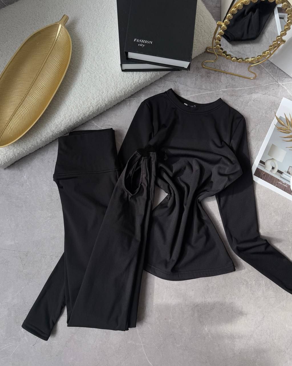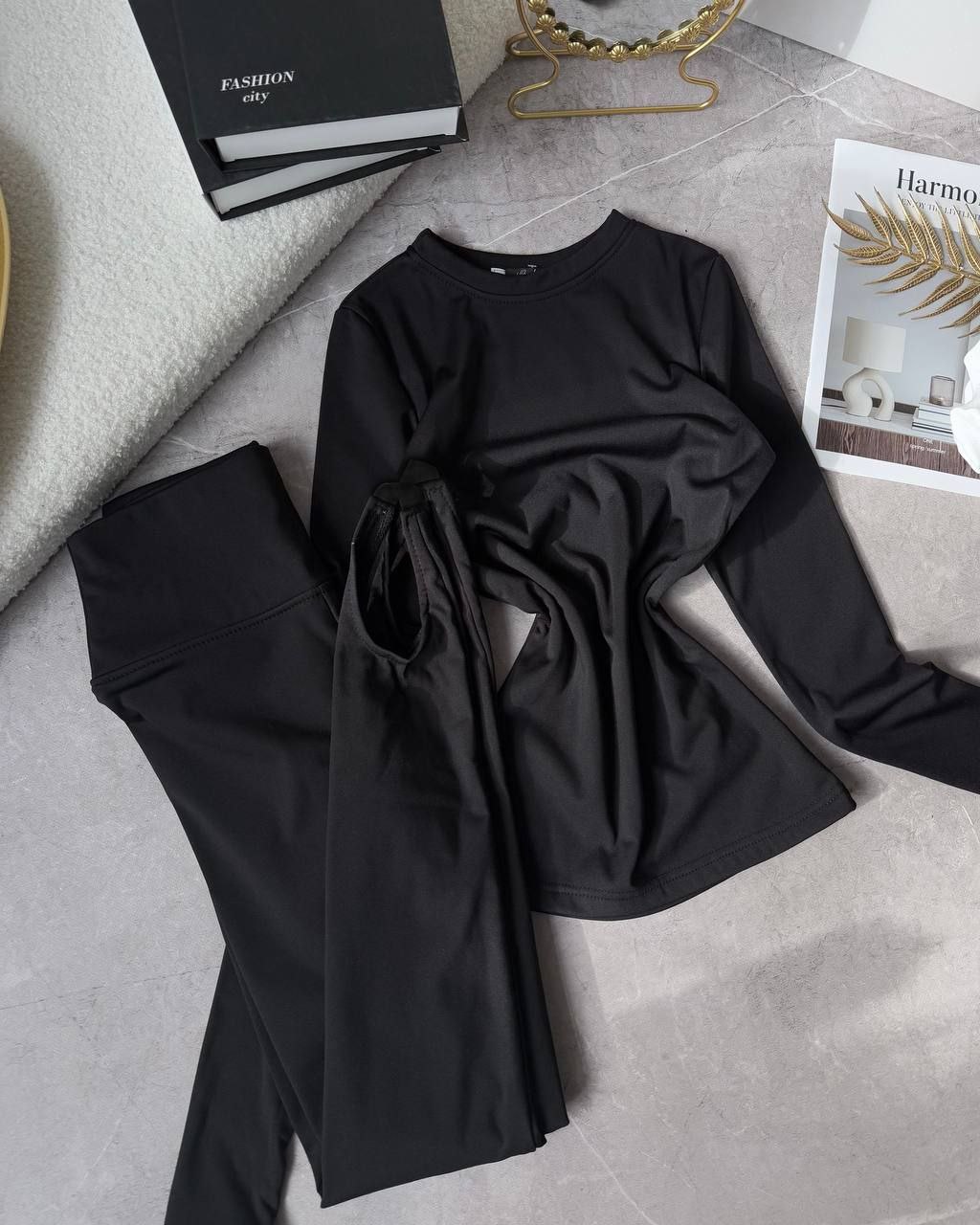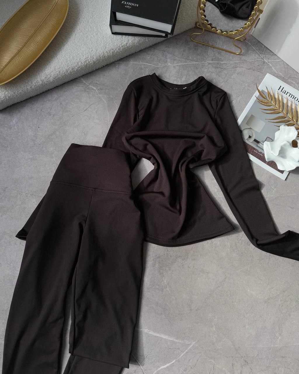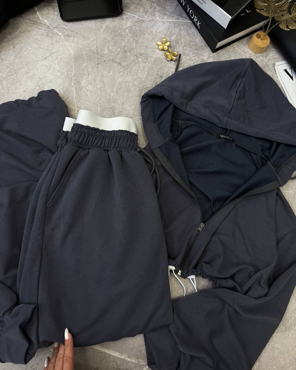 Спортивний прогулянковий костюм - трійка у стилі оверсайз, з вкороченої кофти, топу та обʼємними штанами. Приємна мʼяка тканина, не кошлатиться. Топ тягнеться та сідає по фігурі. Кофта та штани мають знизу фіксатори для зручності. Штани йдуть з резинкою, як на фото, та шнурками.