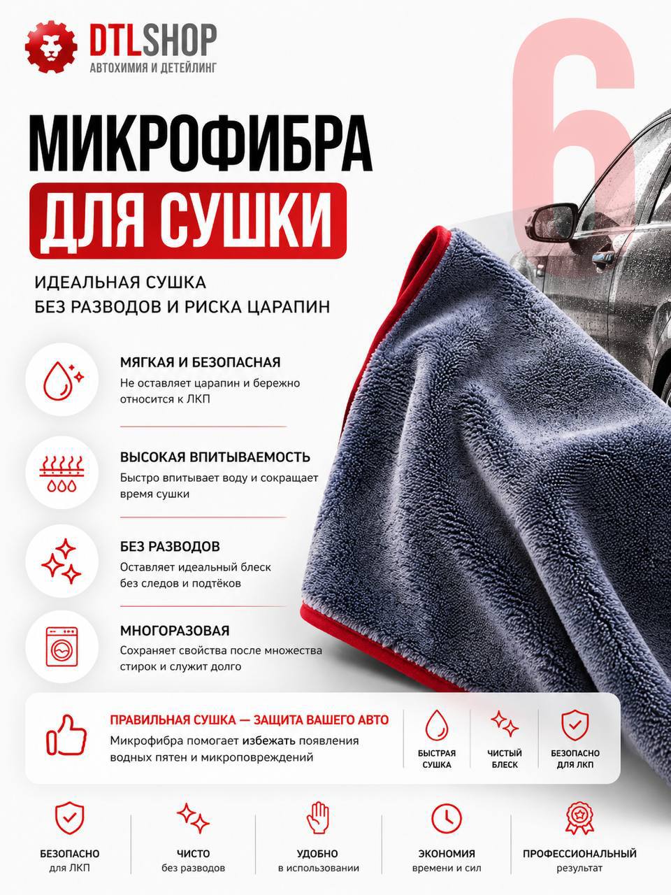 → протираем микрофиброй, переходим на следующий участок
