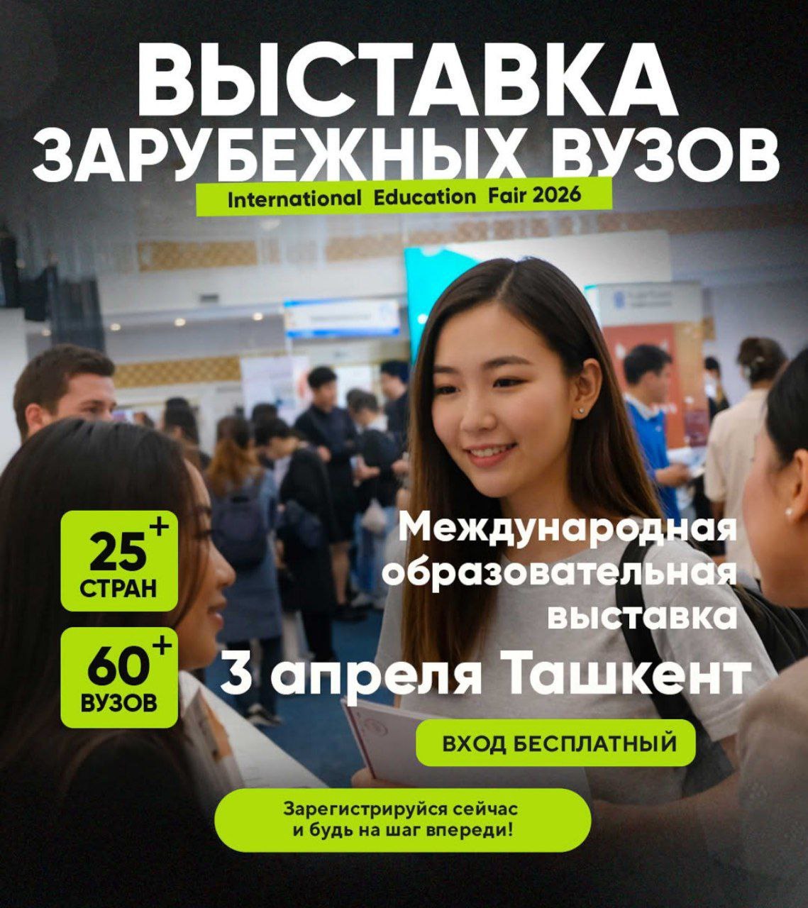 В Ташкенте пройдет международная образовательная выставка «International education fair 2026» — масштабная платформа глобальных возможностей, объединяющая топ-вузы мира, мастер-классы и Career Fair в одном пространстве.
