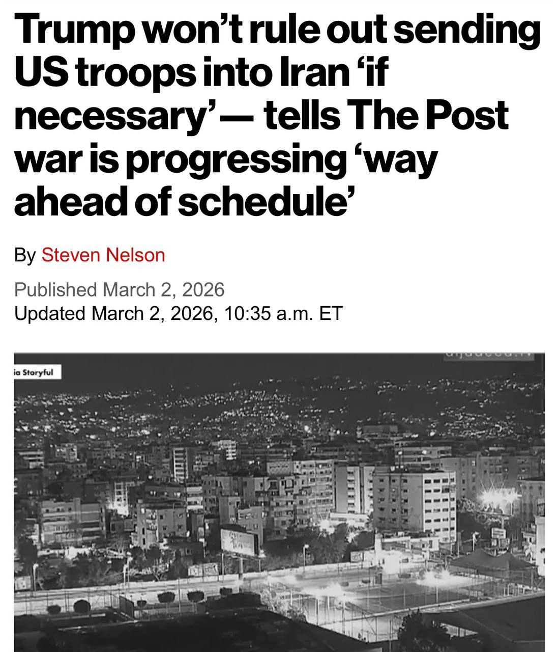 The New York Times: ЦРУ протягом кількох місяців відстежувало пересування Хаменеї та отримало дані про його участь у зустрічі високопосадовців вранці 28 лютого в Тегерані. Після передачі Ізраїлю розвідданих Вашингтон та Єрусалим змінили початковий план нічного удару, перенісши атаку на ранок, щоб вразити одночасно іранське керівництво.