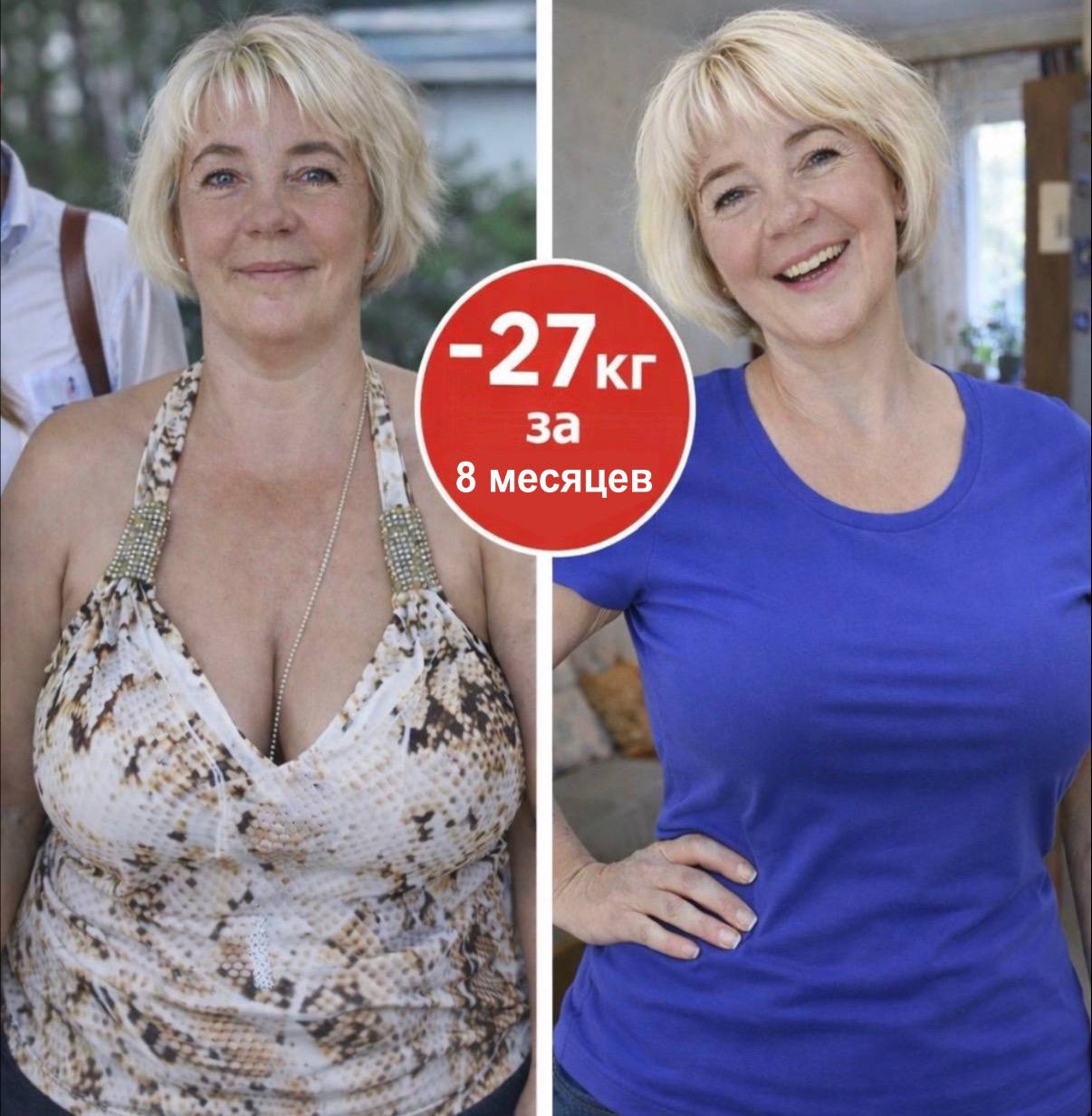 А через 8 месяцев ушло 27 килограммов.