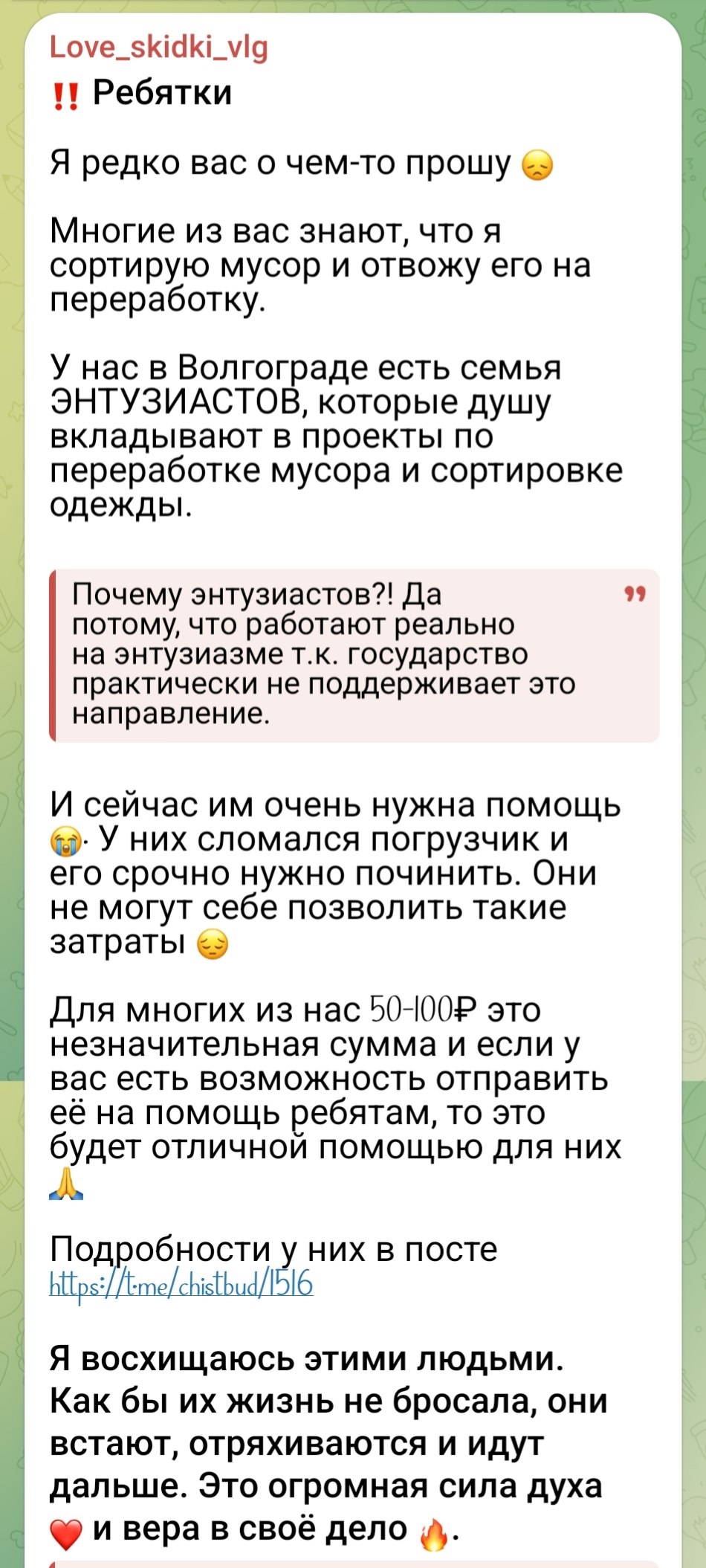 Каждая ваша поддержка, большой или маленький шаг навстречу нашим целям, вселяет в нас уверенность: мы движемся в правильном направлении. Вместе мы делаем неоценимый вклад в чистое и устойчивое будущее нашего региона и страны.